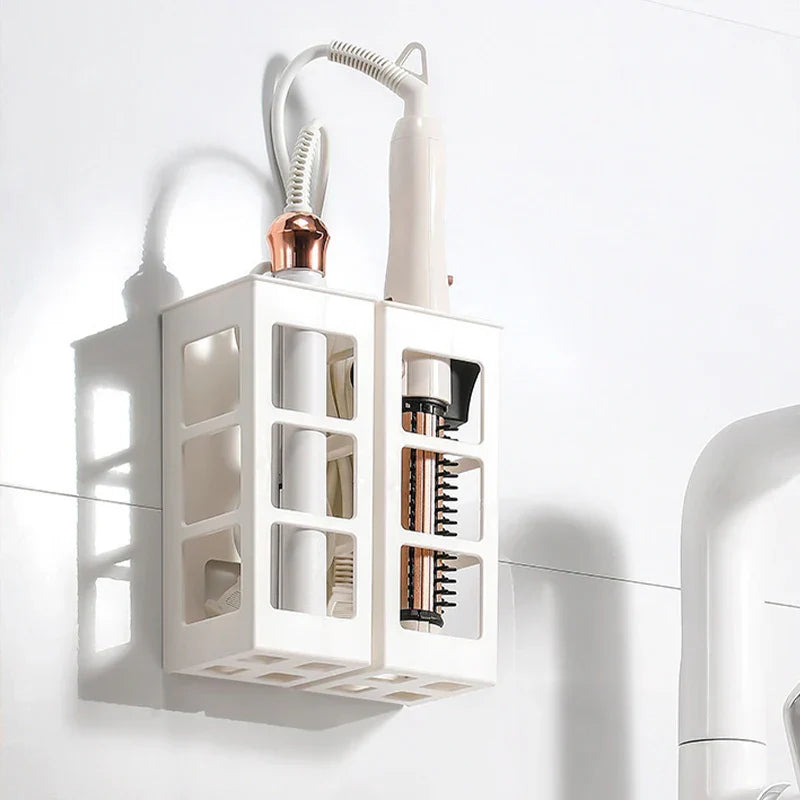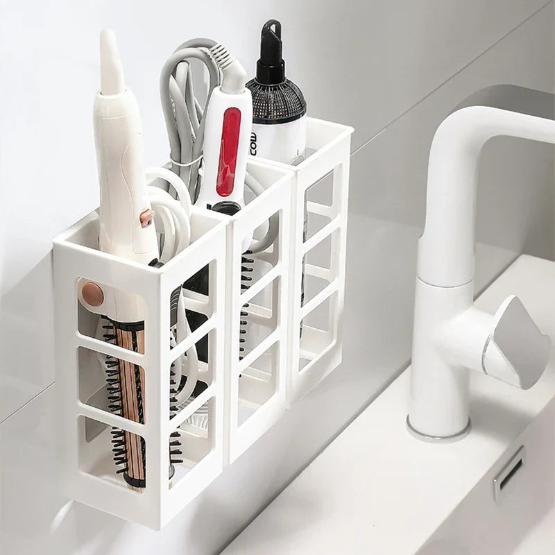 💡 Multifunktionell design: Förutom facket för hårtork har organisern en praktisk hylla för borstar, locktänger eller skönhetsaccessoarer.