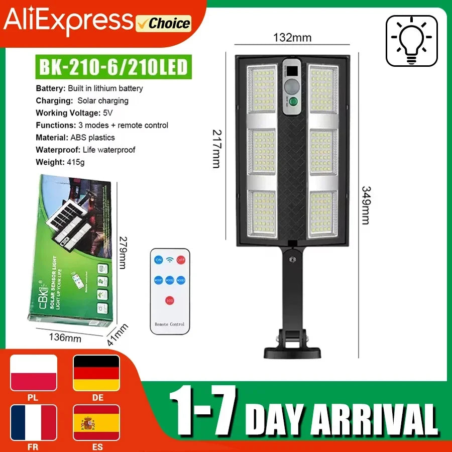 Carvallo ProMotion 55 Solarlampa med rörelsesensor | 55 LED | IP65 Vattentät | Med fjärrkontroll & 3 lägen | 320° Spridningsvinkel