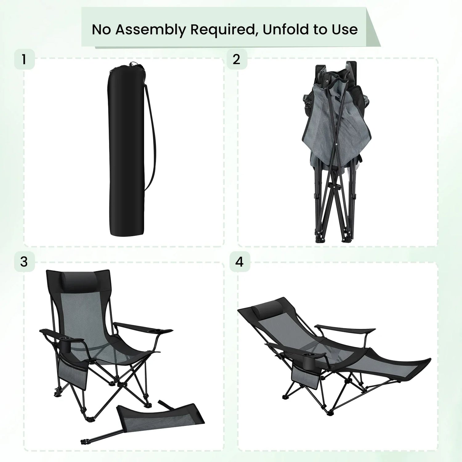 Hemnix Relax Fällstol | Justerbar & Hopfällbar | Med Fotstöd | Ultralätt & Bärbar – Svart/Grå