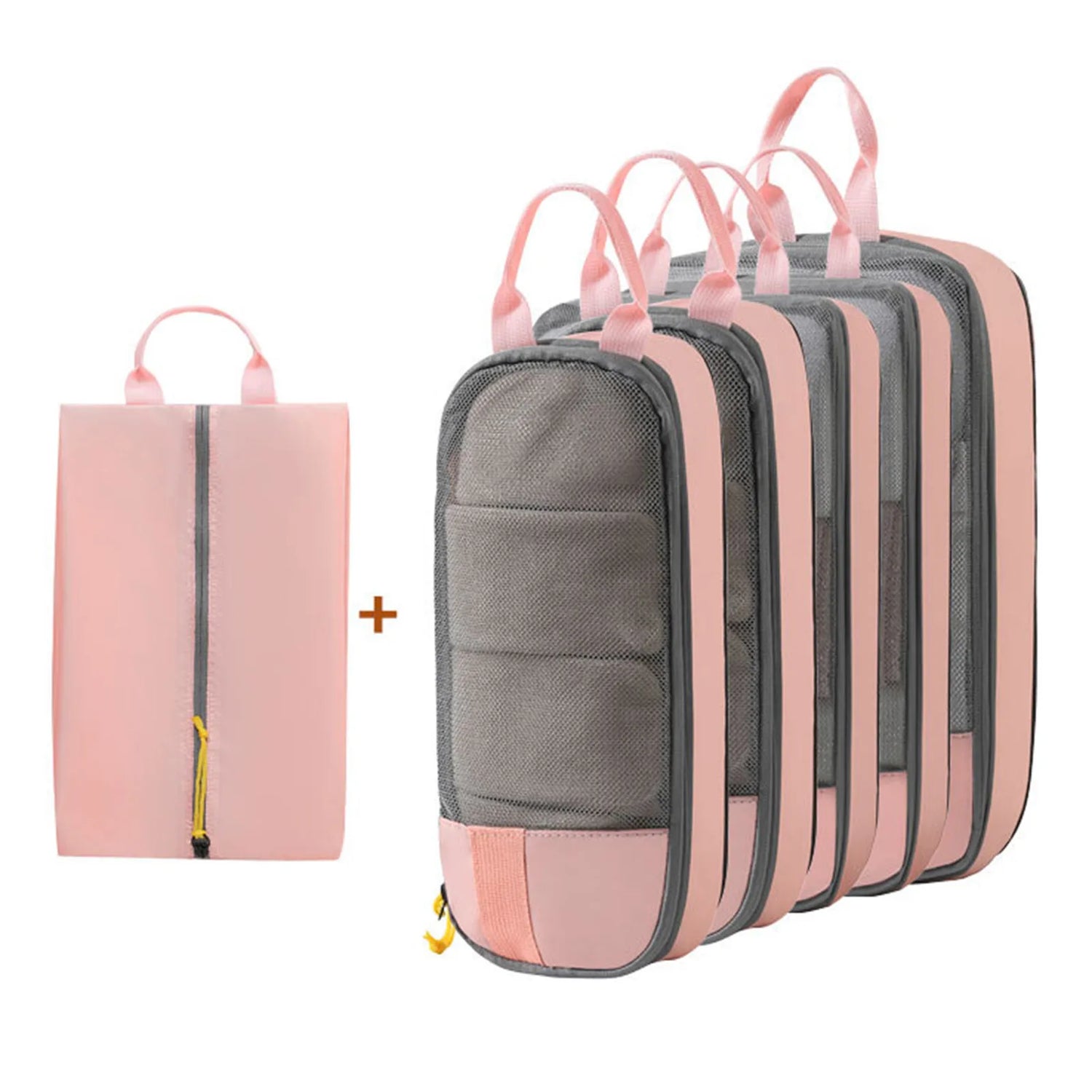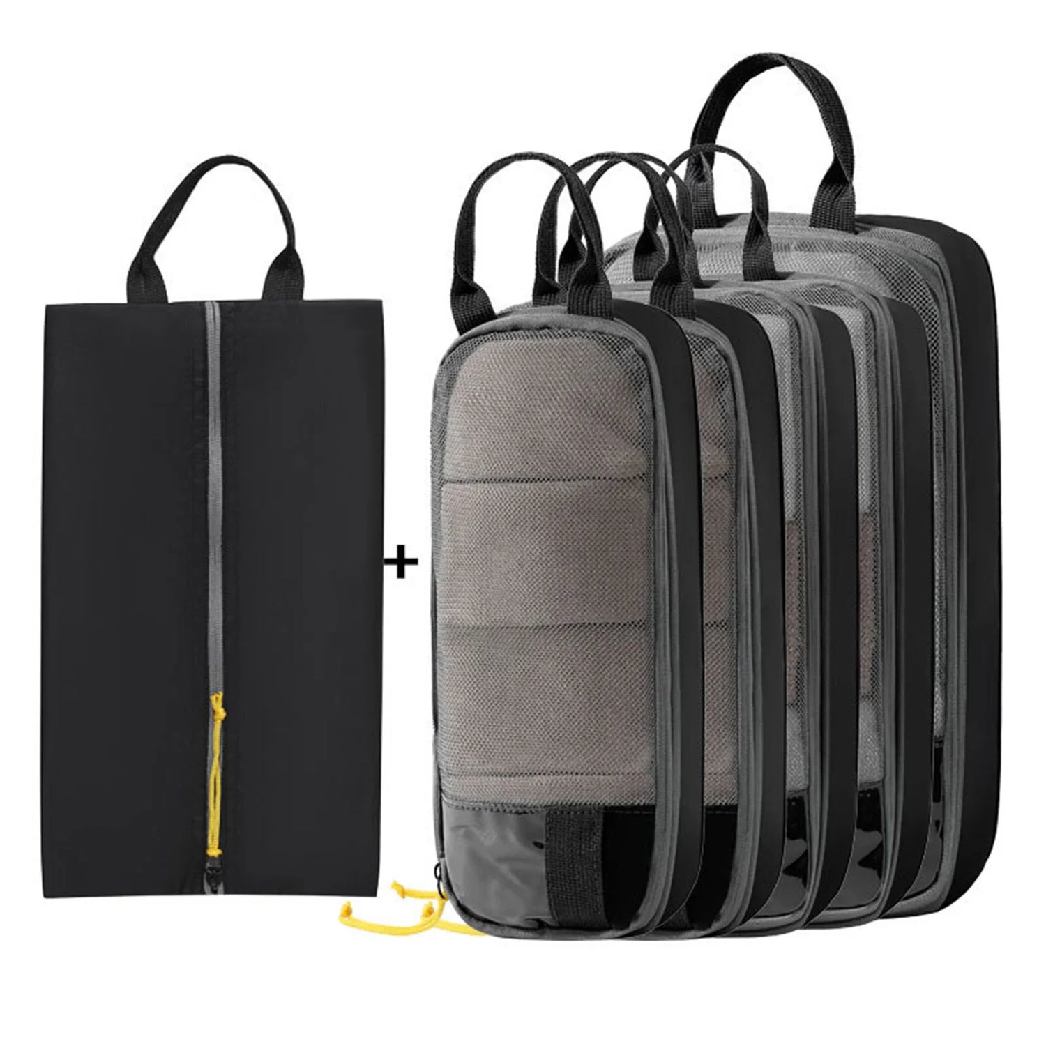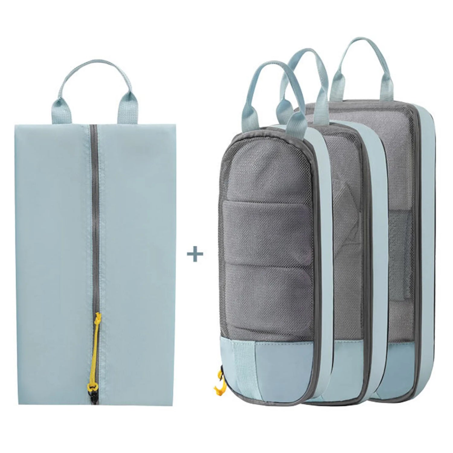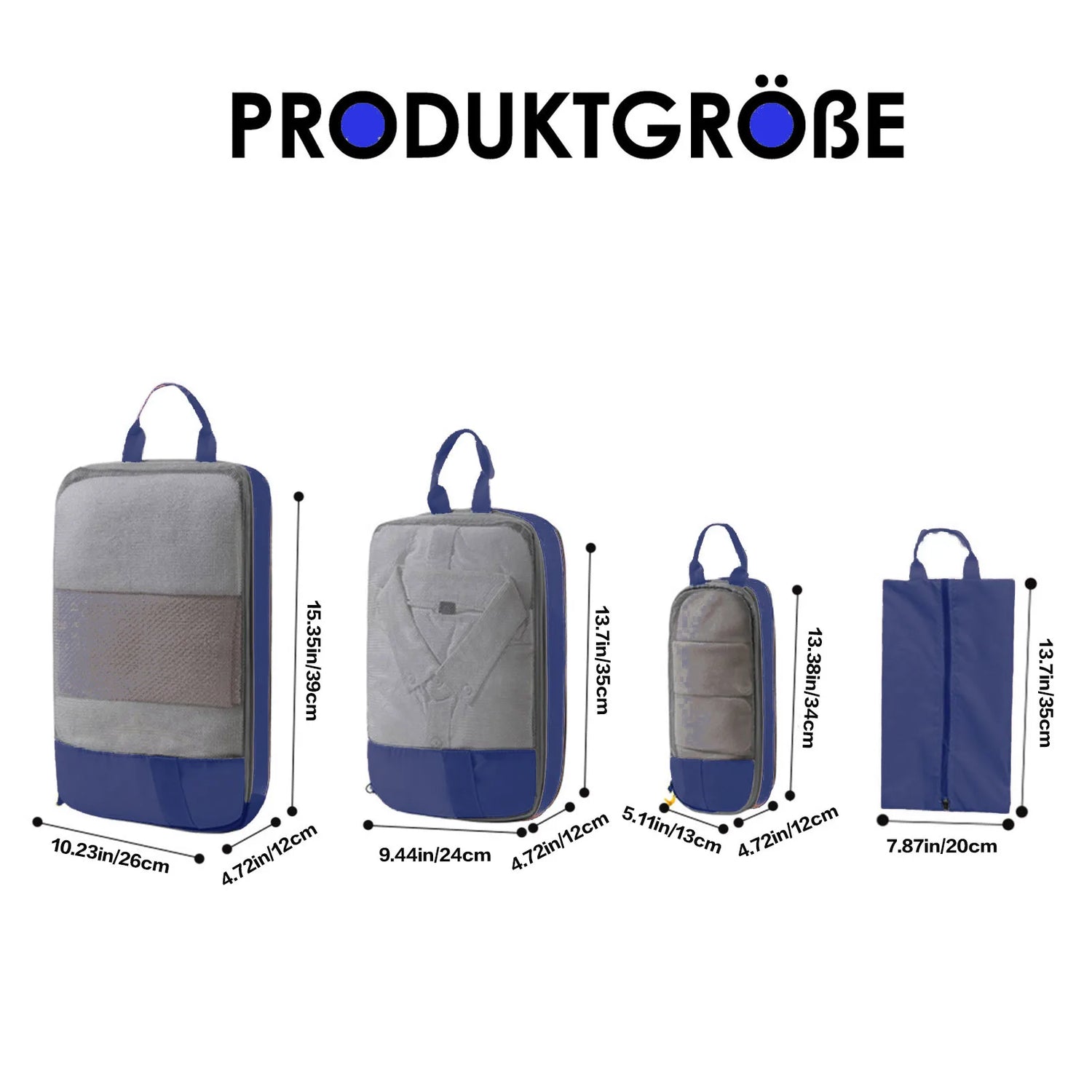 Carvallo Researrangör Set | Kompressionspåsar för kläder & kosmetik | Platsbesparande & rivfast | Oxford-tyg