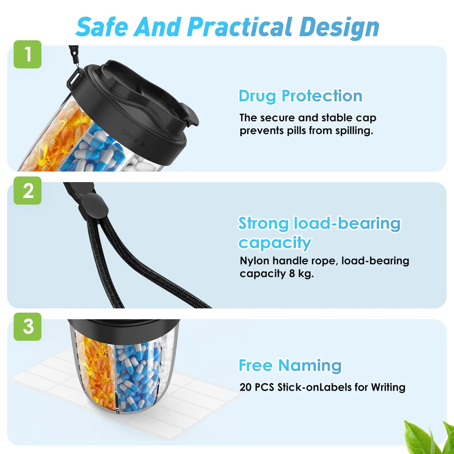 🧳 Resevänlig & hållbar: Tack vare det robusta bärhandtaget (kapacitet upp till 6 kg) är pillerdosen din perfekta resesällskap. Oavsett om det är en weekendresa eller en långresa – du har allt till hands.