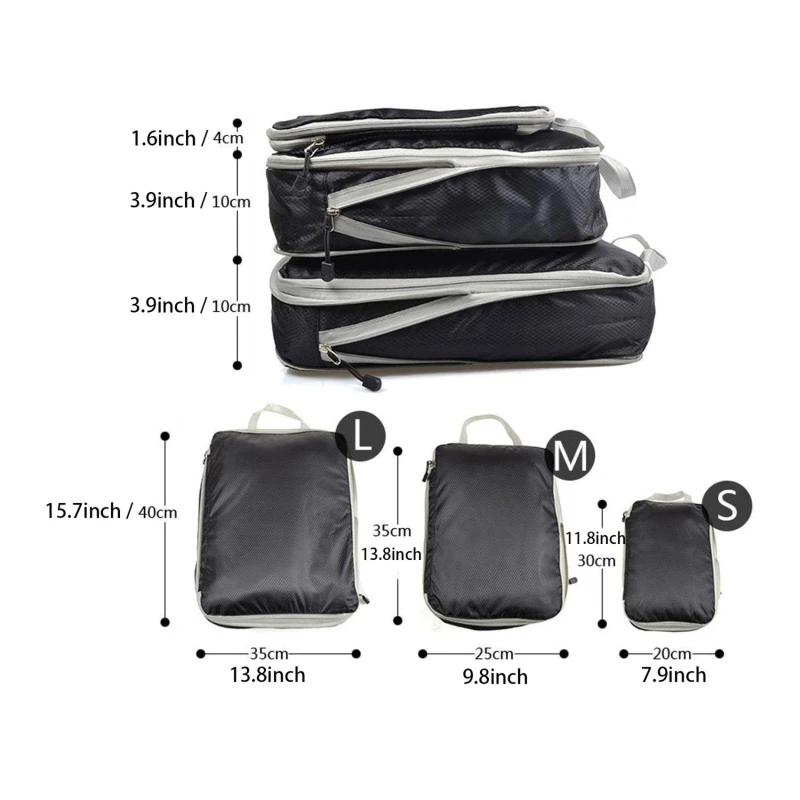 📌 Platsbesparande & organiserat – Genom kompressionssystemet kan du packa kläder kompakt och utnyttja din resväska optimalt. Perfekt för den som reser mycket!