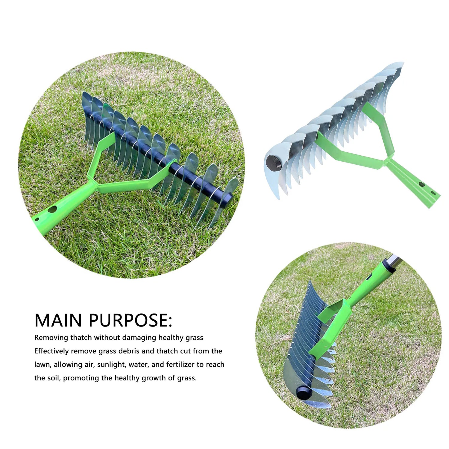 📌 Effektiv filzborttagning – De böjda rostfria tänderna tränger in i filzlagret, tar bort dött material och förbättrar luft-, vatten- och näringstillförseln.