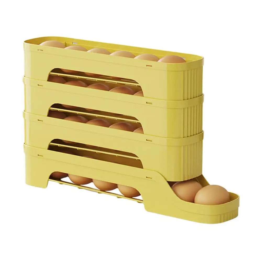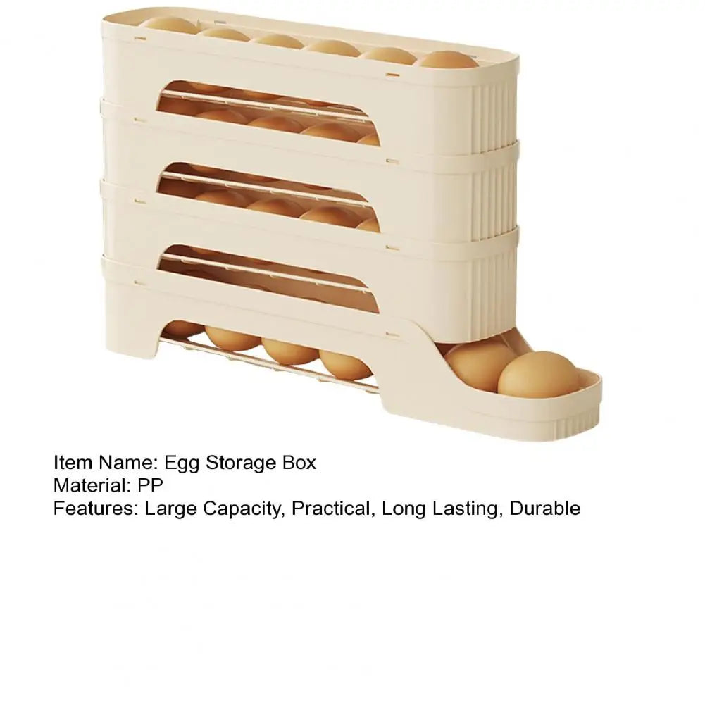 ✨ Stor kapacitet på 4 nivåer: Idealisk för familjer och hushåll med hög äggkonsumtion. Sparar värdefull plats i kylskåpet eller på bänkskivan.
