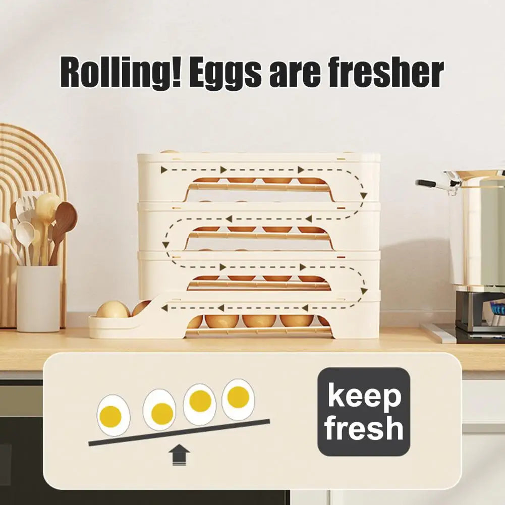 Carvallo RolloMaxx | 4-lagers äggorganisatör | Platsbesparande & Självrullande | Transparent design