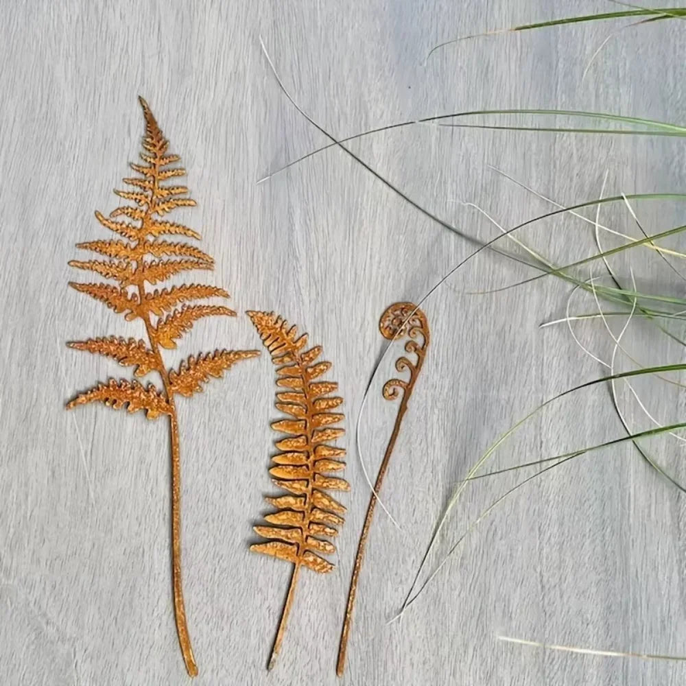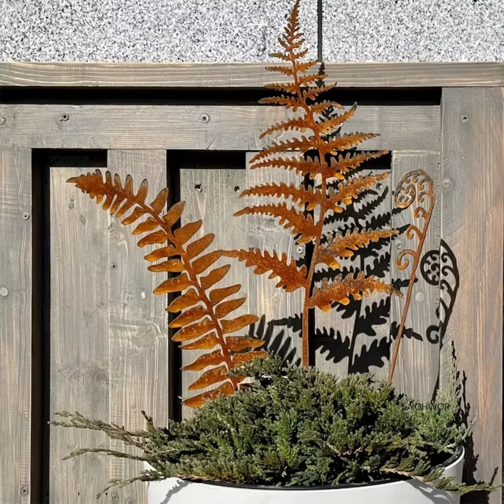 📌 Stämningsfull rostlook: De konstfullt bearbetade bladsformerna smälter harmoniskt in i varje naturscen.