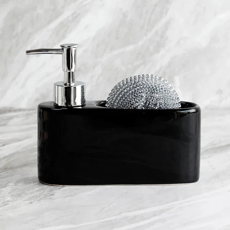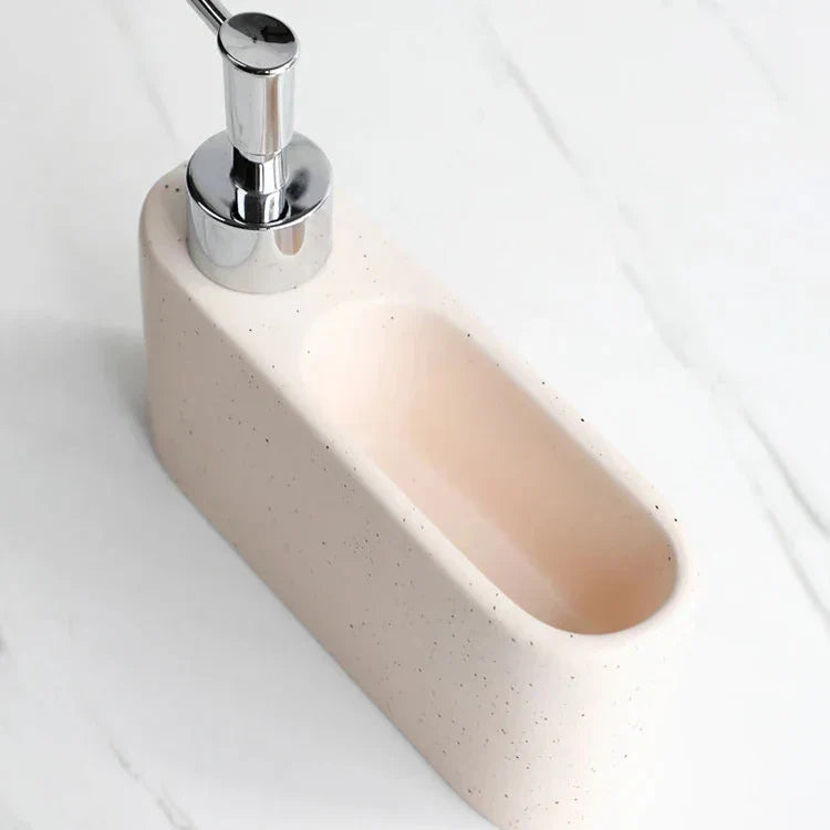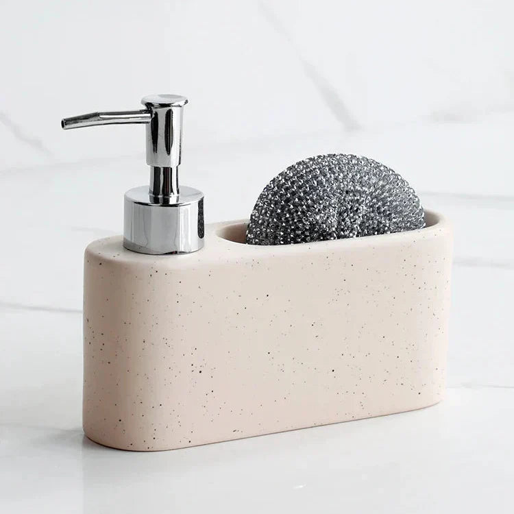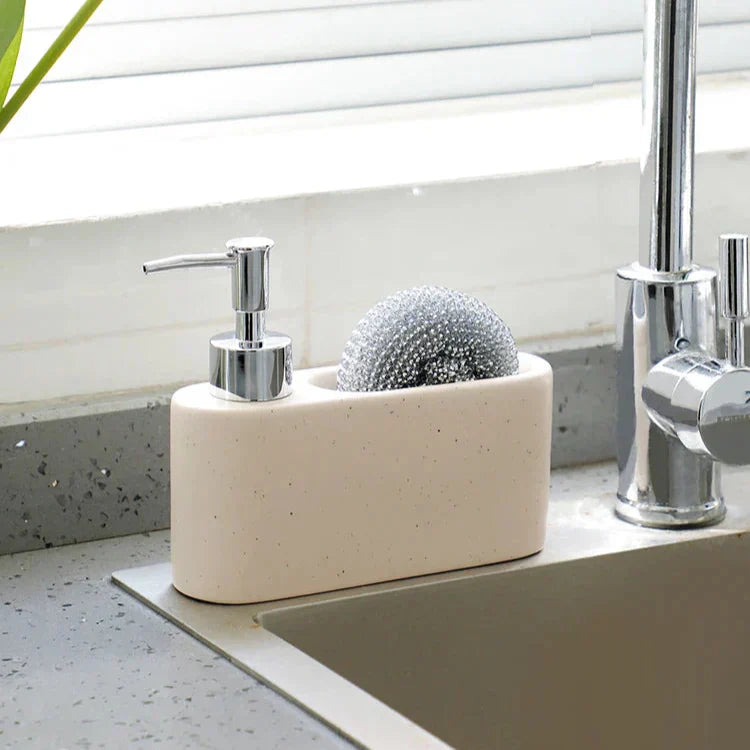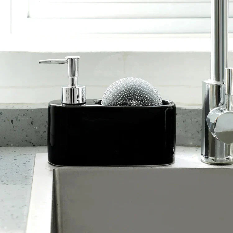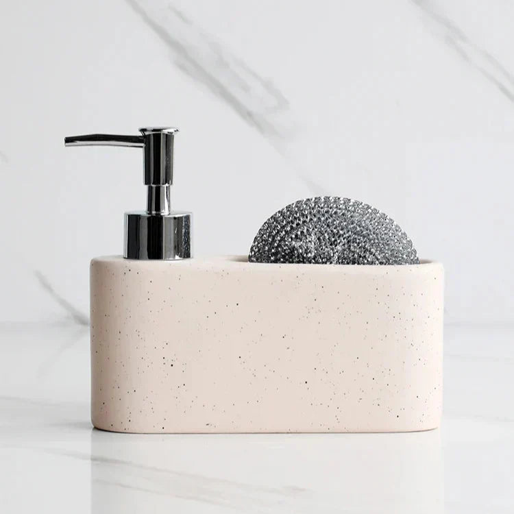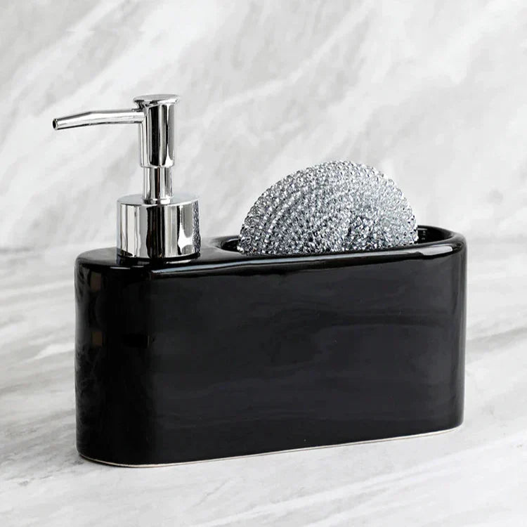 Denna tvåldispenser med inbyggd svamphållare gör det möjligt för dig att upprätthålla en ren och snygg miljö. Dess genomtänkta design hjälper till att hålla din svamp torr och redo att använda, medan dispensern säkerställer en jämn och enkel applicering av tvål. Carvallo är det perfekta valet för dem som söker funktionalitet kombinerad med en raffinerad, platsbesparande lösning.
