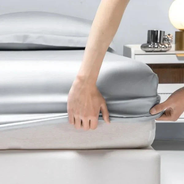Detta silkesmjuka spännlakan förvandlar din säng till en oas av komfort. Det reglerar temperaturen, skonar hud och hår och förblir perfekt på plats hela natten. Dessutom får du 2 matchande örngott gratis – för en helhetsupplevelse av lyxig sömn.