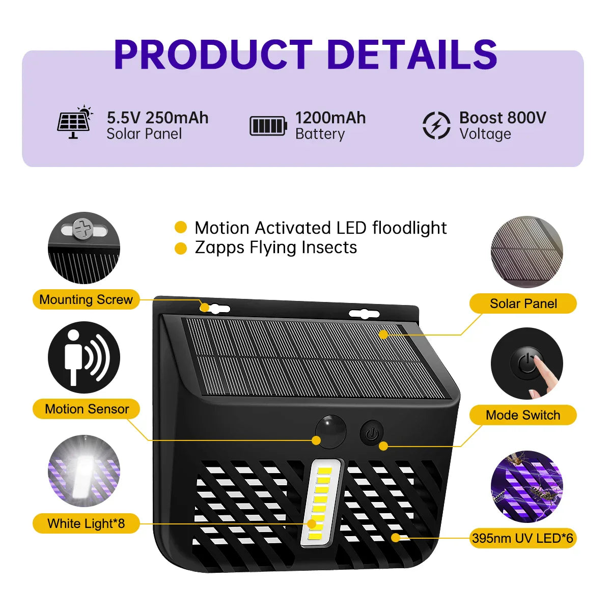 Funktioner: UV-insektsfälla + rörelsesensor-lampa