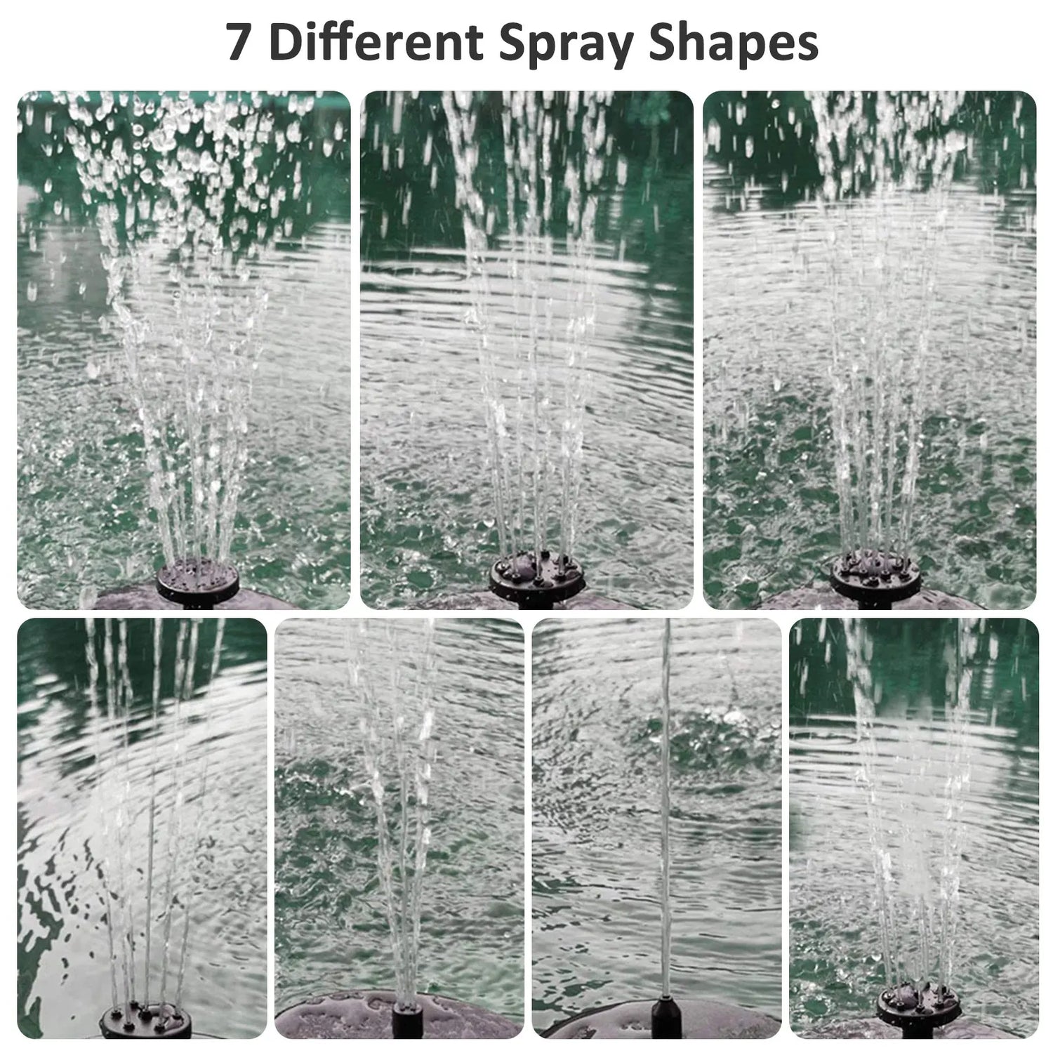 💦 7 utbytbara fontännipplar – Designa ditt vattenflöde individuellt med olika munstycksformer – från mjukt sprutande till dynamisk fontän.