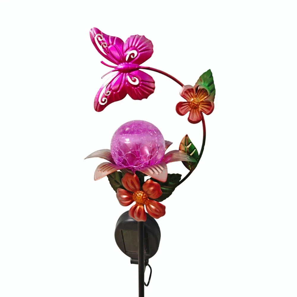 Carvallo Solsken Solar Trädgårdsstake Blomma med LED | Glasblomma & Järnstång | Automatiskt ljus vid skymning | För Trädgård, Balkong & Terrass