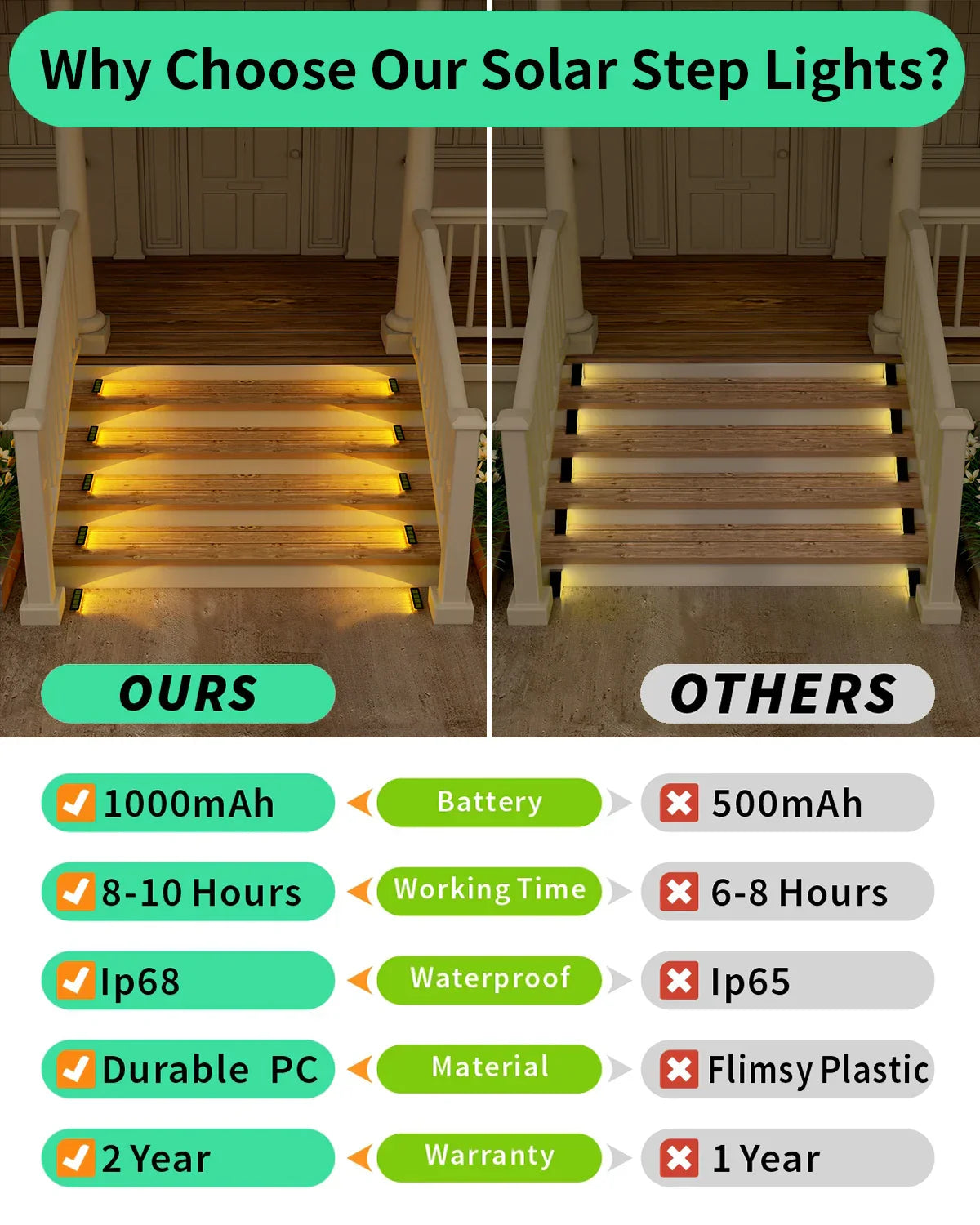 🎨 Mångsidig & platt monterbar – Perfekt för trappsteg, gångvägar eller däck – inklusive självhäftande kuddar för snabb installation.