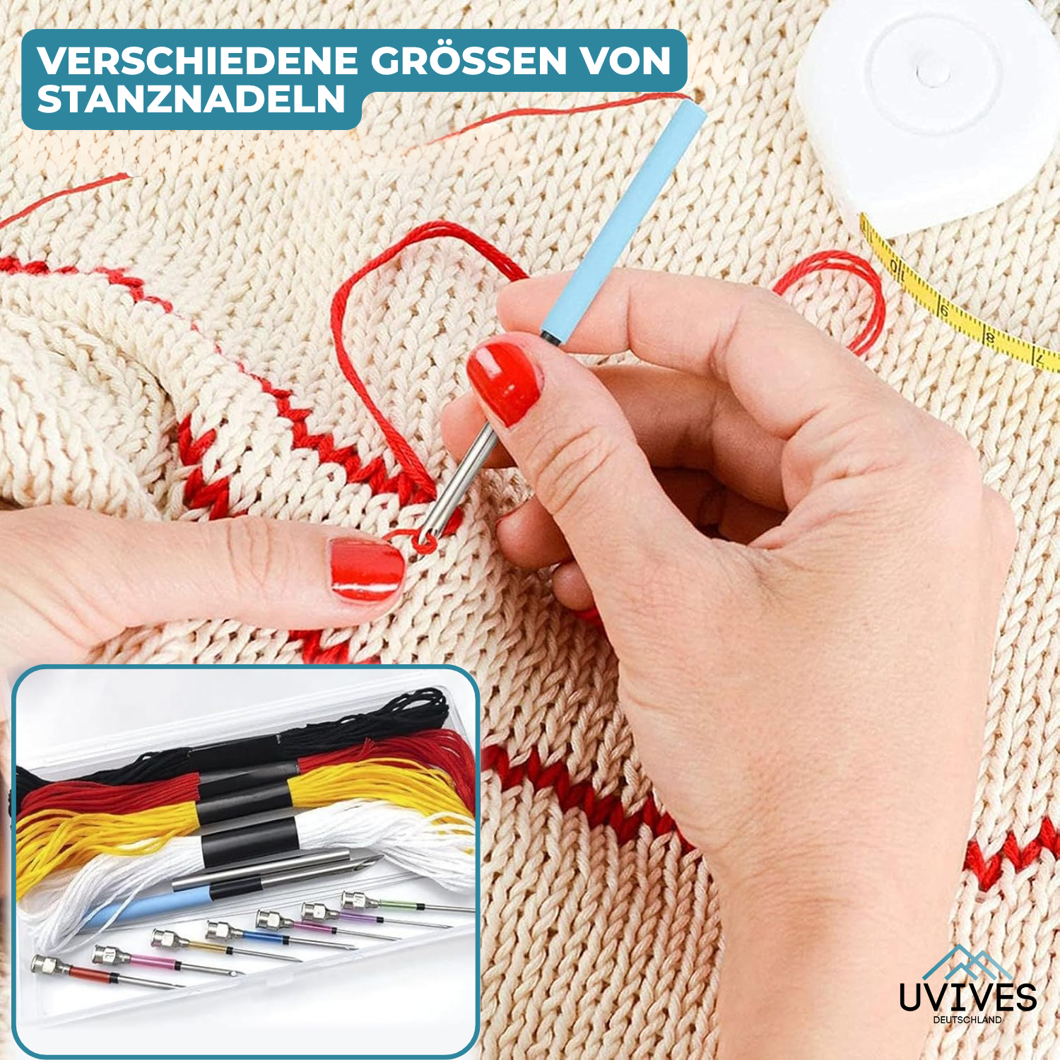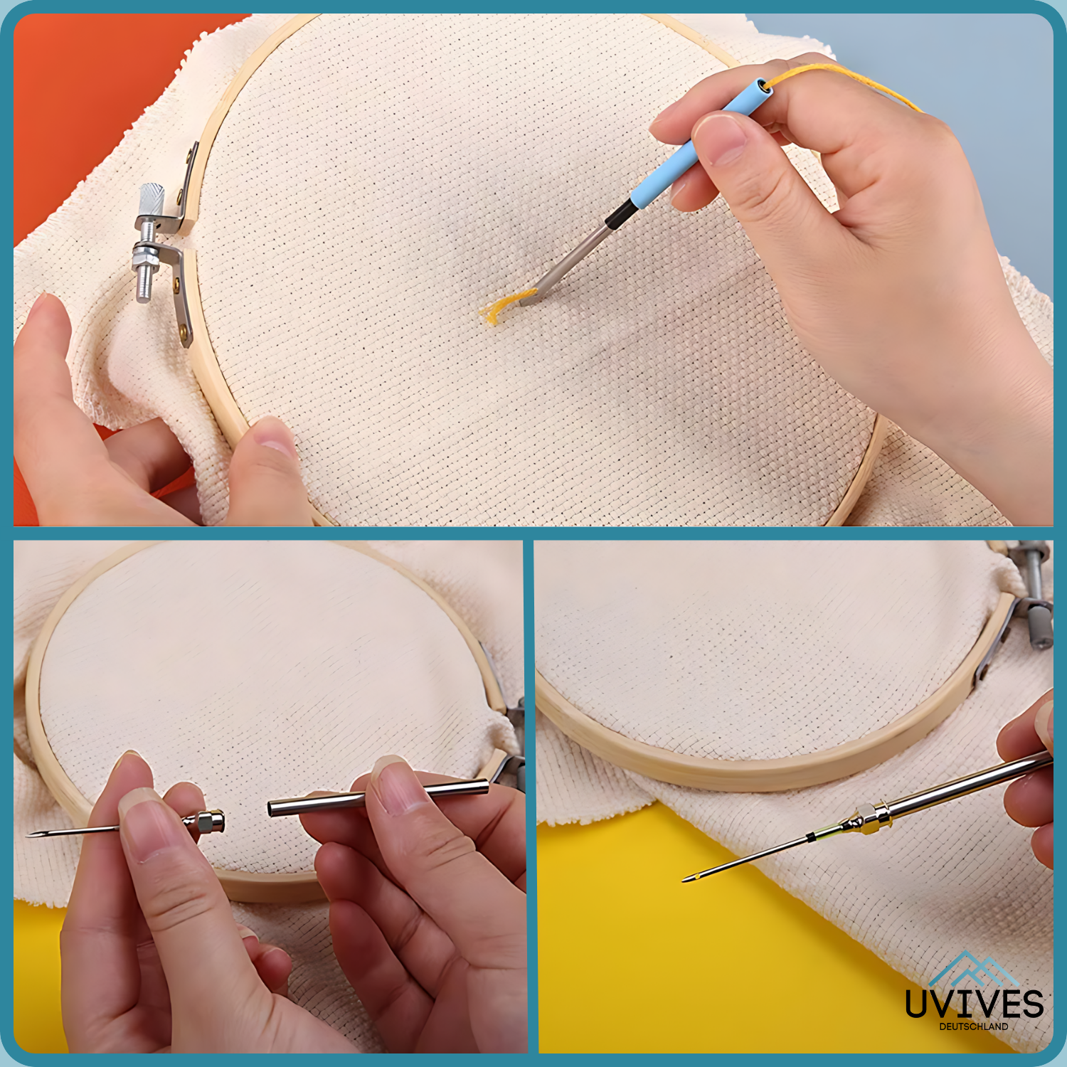 Brodera som ett proffs – helt utan övning Med Carvallo Set kan du göra imponerande broderier på några minuter. Bara stick, dra igenom – klart. Perfekta resultat utan sömnadskunskaper.