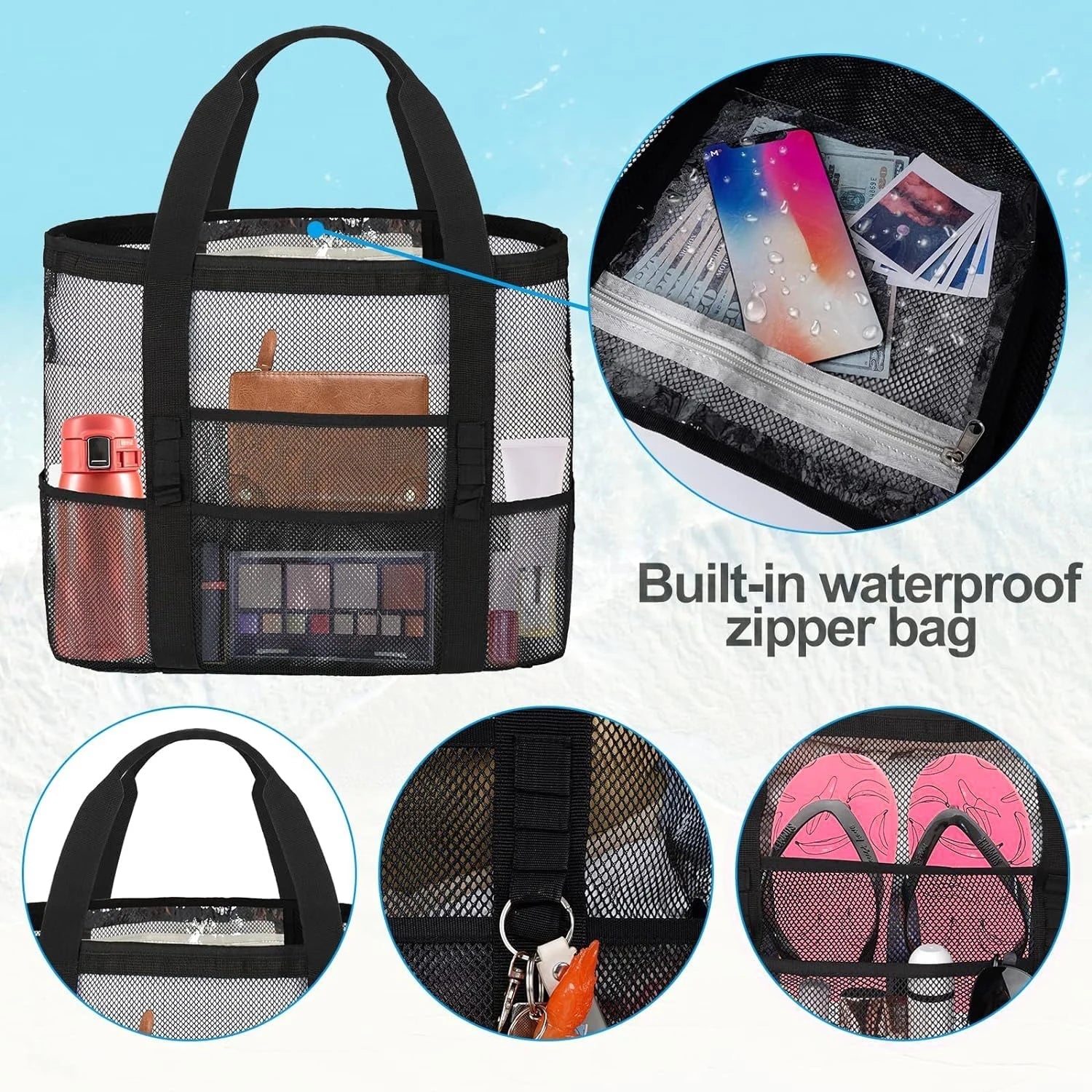 🏖️ Sand- och vattentät – Det grovmaskiga nätet låter sand & vatten rinna av enkelt – innehållet förblir rent & torrt.