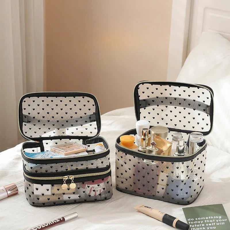 Praktisk, stilren och organiserad – med Carvallo TravelMesh sminkväska har du alltid dina skönhetsprodukter inom räckhåll. Den dubbla nätdesignen kombinerar synlighet med skydd, perfekt för resor, vardag eller gymmet.