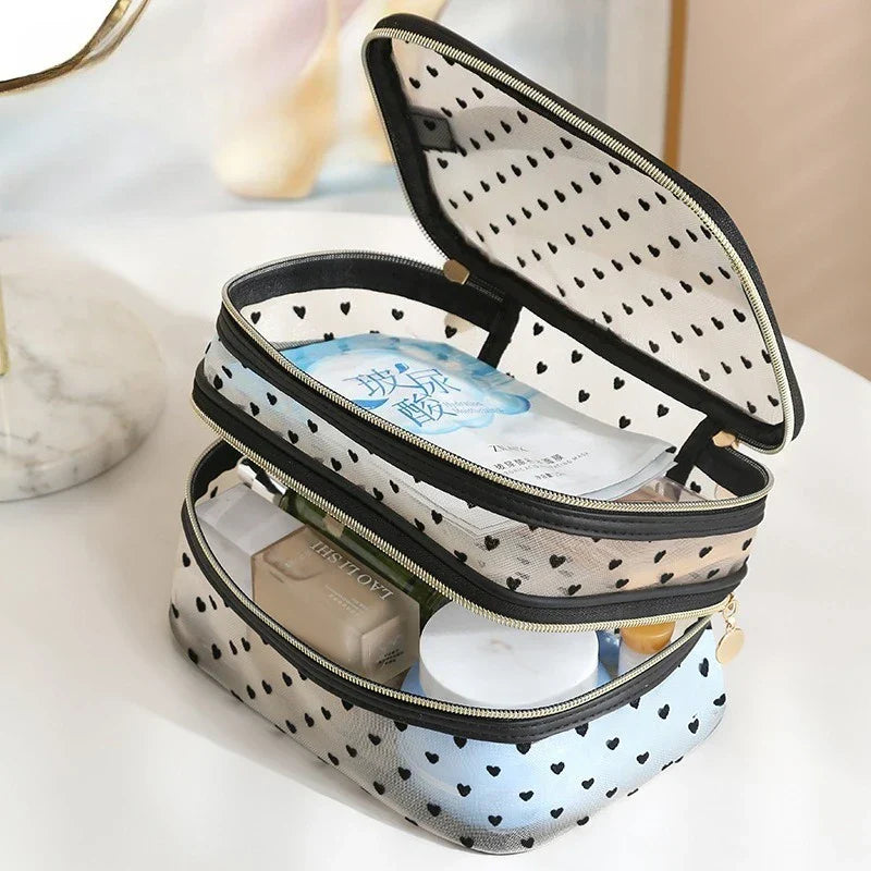 Carvallo TravelMesh kosmetikväska med dubbelfack | Stort volym & dragkedja | Svart & Transparent