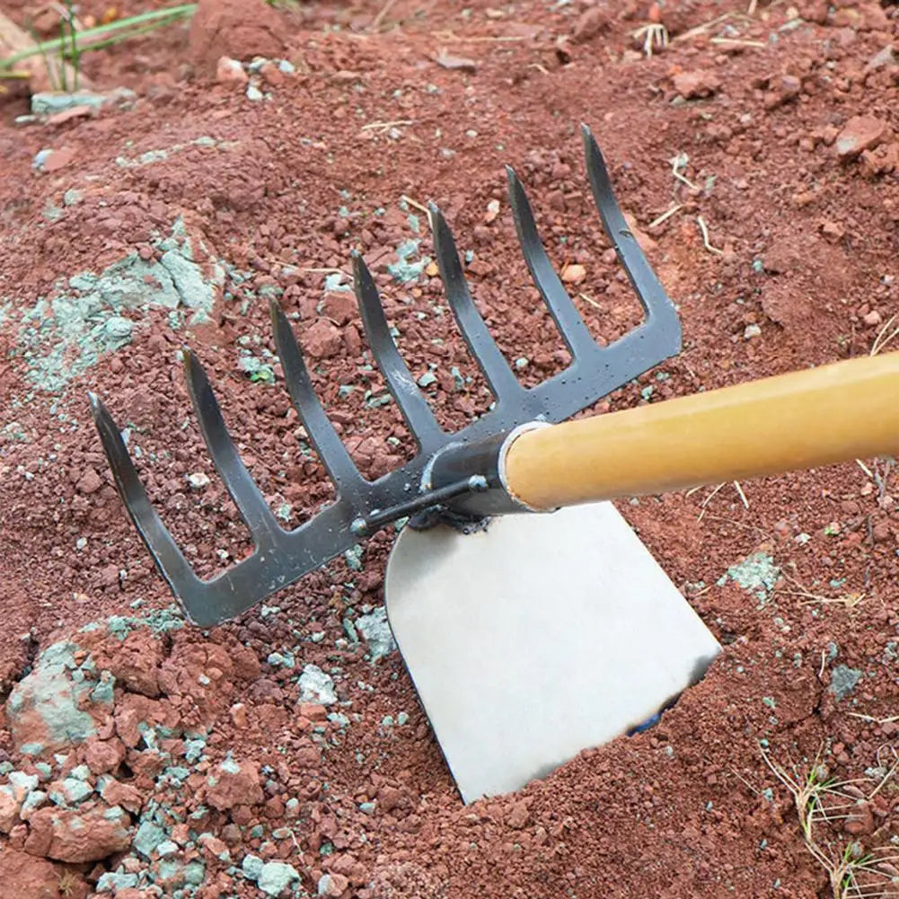 📌 2-i-1 funktion – Ränna och hacka i ett verktyg: för upplockning, jämna till, rensa ogräs och gräva – utan verktygsbyte.