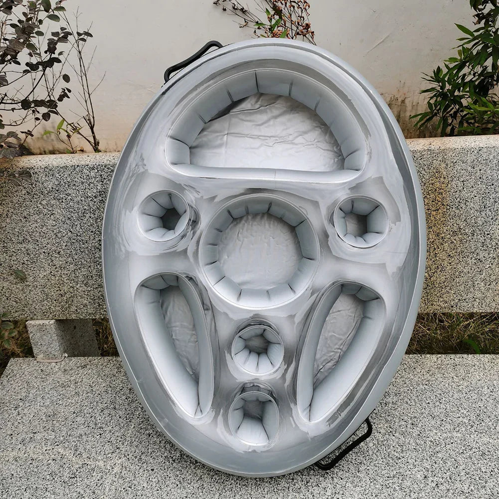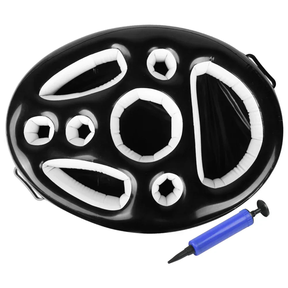 🎨 Anti-tipp design & mångsidighet – Den uppblåsbara strukturen säkerställer ett stabilt stöd för dina flaskor och burkar – även vid rörelse i vattnet. Lämplig för olika storlekar och former.