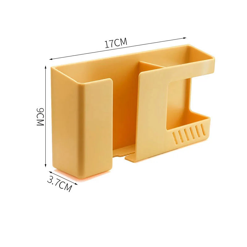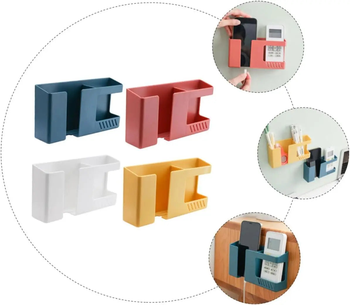 Carvallo Väggfäste utan borrning | Multifunktionell fjärrkontroll- & mobilhållare med krok – 17×9×3,8 cm