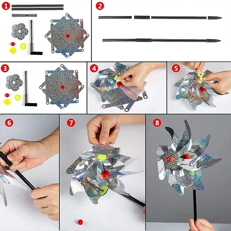 📌 Effektiv Carvallo: De glittrande vindsnurrevindbladen reflekterar solljuset och skapar ljusblixtar som skrämmer bort fåglar – helt utan skada eller stress för djuren.