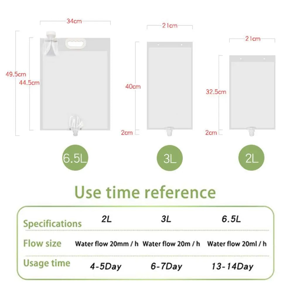 Carvallo växtvattensäck | Upp till 30 dagars automatisk droppbevattning | Med ventil & 1 m slang | 2–6,5 L