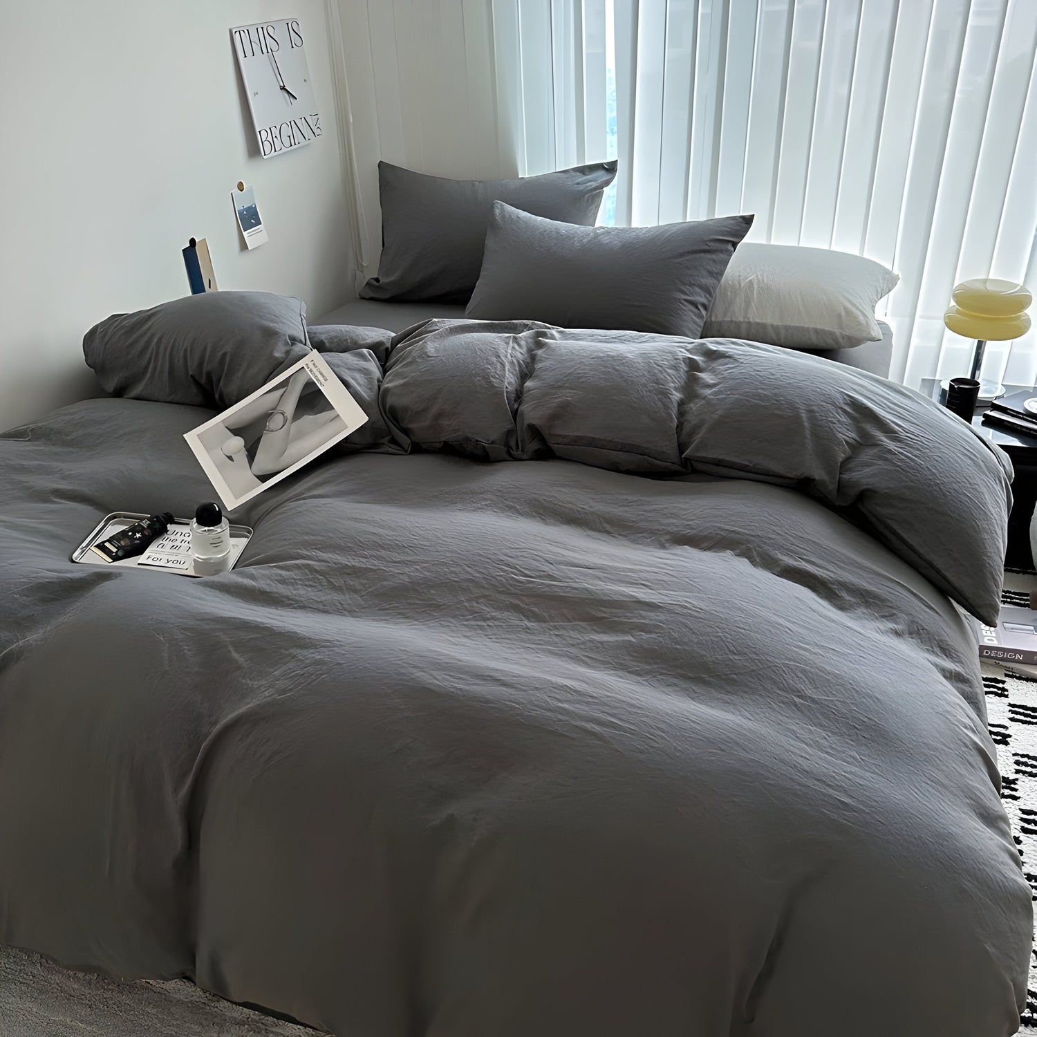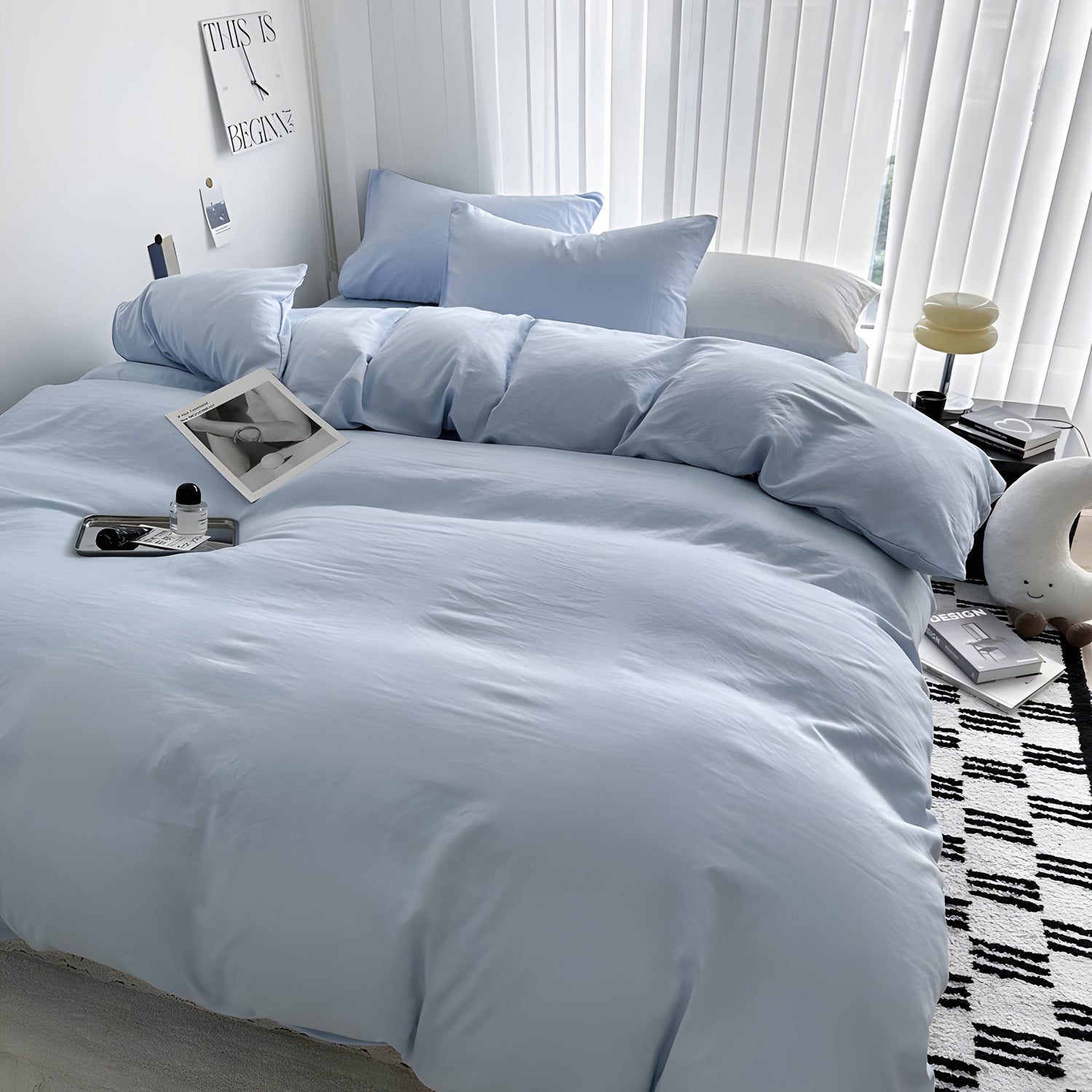 Med CloudHaven sängkläder förvandlar du ditt sovrum till en oasis av avkoppling. Tillverkad av 100 % högkvalitativ bomull, erbjuder detta set inte bara en behaglig känsla mot huden, utan också en tidlös elegans som passar in i varje inredning. Den enkla, enfärgade designen skapar en lugnt atmosfär och låter dig vakna fräsch varje morgon.