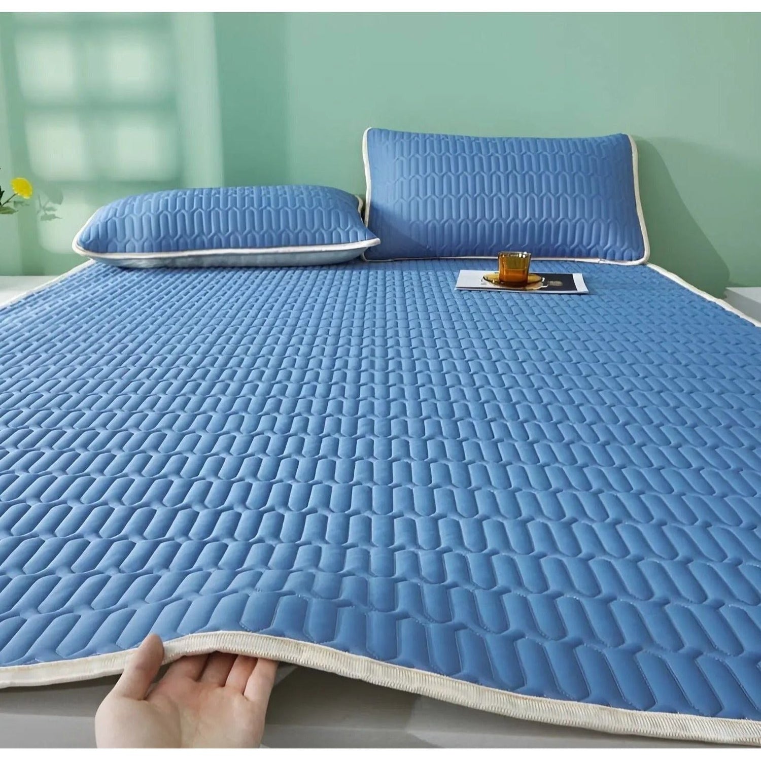 Upptäck CoolDream-setet, den perfekta lösningen för en god natts sömn under varma nätter. Vår latexkylmatta erbjuder ett behagligt svalkande och ser till att du alltid känner dig bekväm. Med sin moderna design och höga funktionalitet förvandlar den din säng till en oas av friskhet. Oavsett om det är i sovrummet eller i sovsalen, är CoolDream-setet ditt svar på kvava sommarnätter.