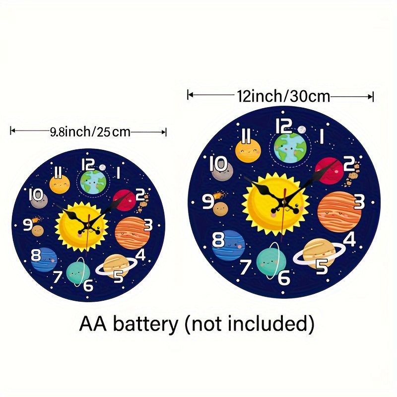 Tillsätt en touch av rymdmagi till ditt hem med CosmicTime Väggklocka. Denna unika klocka med en färgglad solsystemdesign är perfekt för vardagsrum, sovrum eller kontor. Med sin tysta drift och lärorika stil är den både en iögonfallande detalj och ett funktionellt konstverk.