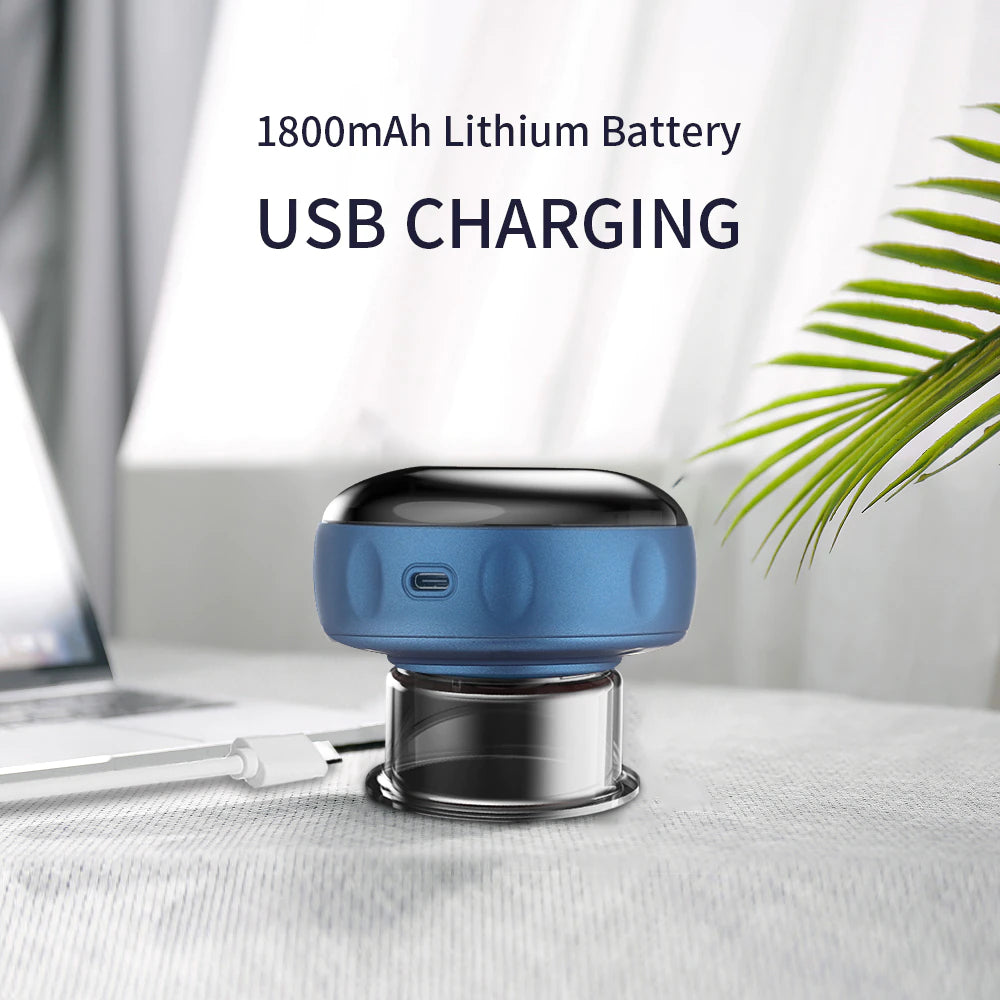 Den här produkten kombinerar tre funktioner: behandling med sugkoppar, skrapning och massage. Den främjar effektivt blodcirkulationen, rensar meridianerna, stimulerar akupunkturpunkterna, bra mot stelhet, avlägsnar kyla, förbättrar immunförsvaret och slappnar av musklerna.