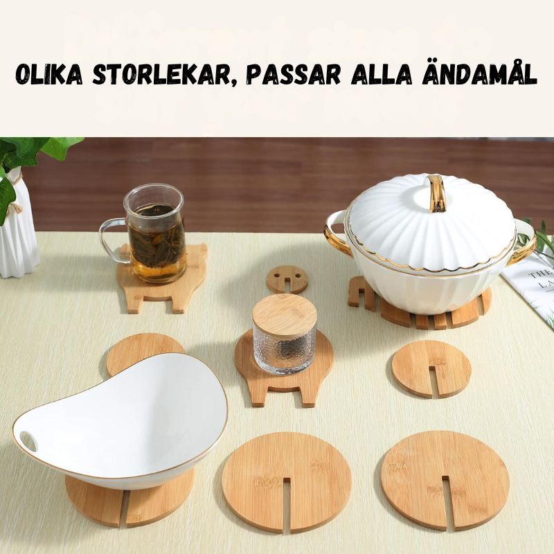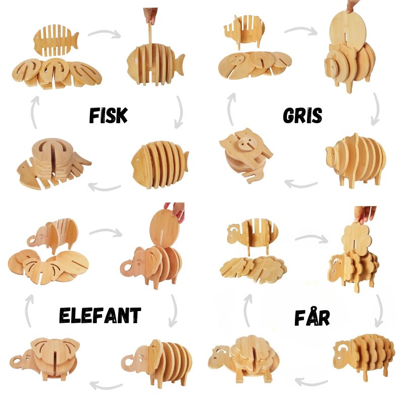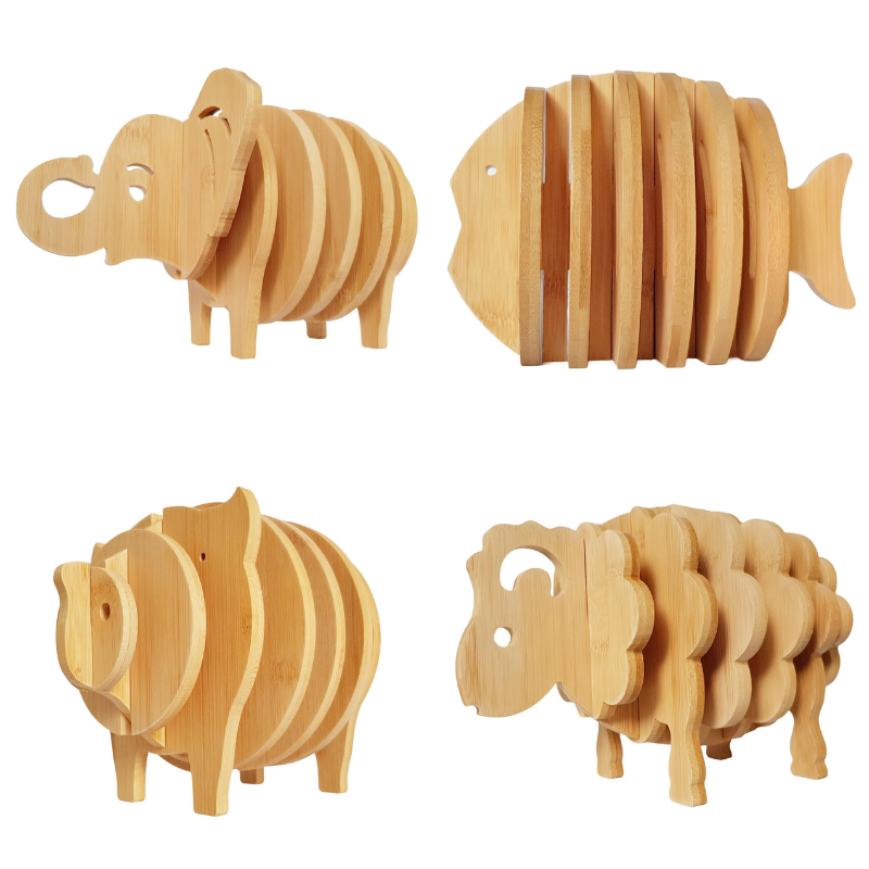 Ge ditt hem en naturlig och lekfull touch med dessa unika glasunderlägg, tillverkade av äkta ek. Varje set består av sju underlägg som tillsammans formar ett djur, vilket gör dem både praktiska och dekorativa. Välj mellan olika djurmotiv, inklusive elefant, fisk, gris och får, för att skapa en personlig atmosfär vid ditt matbord.