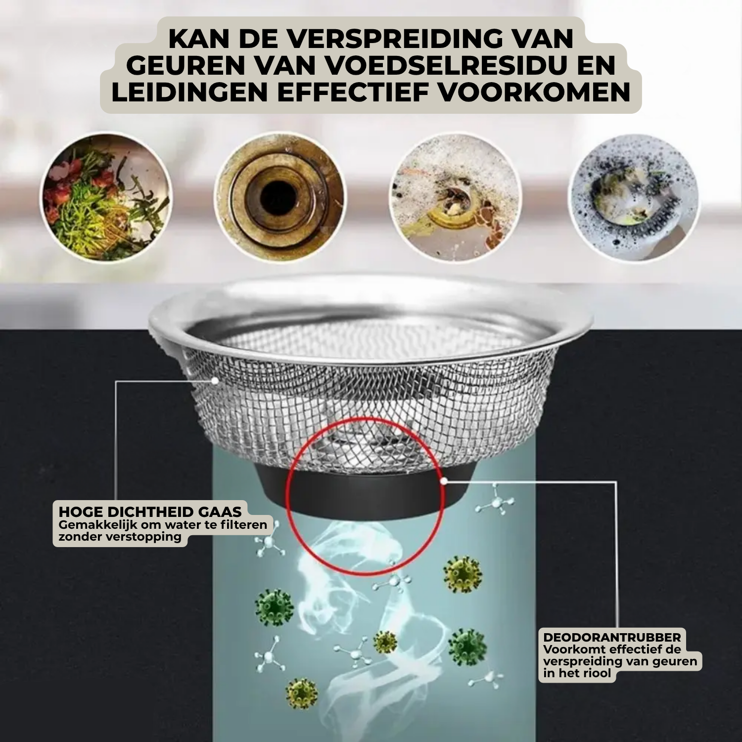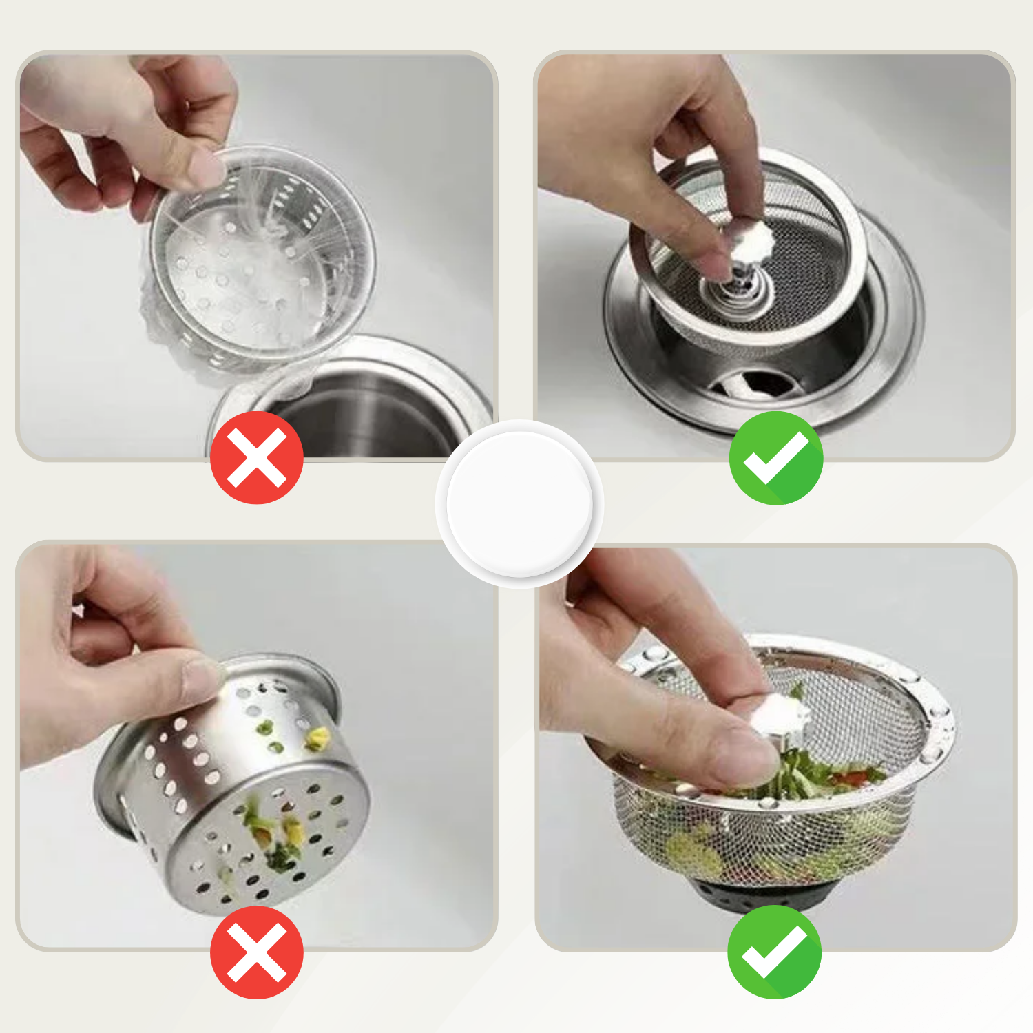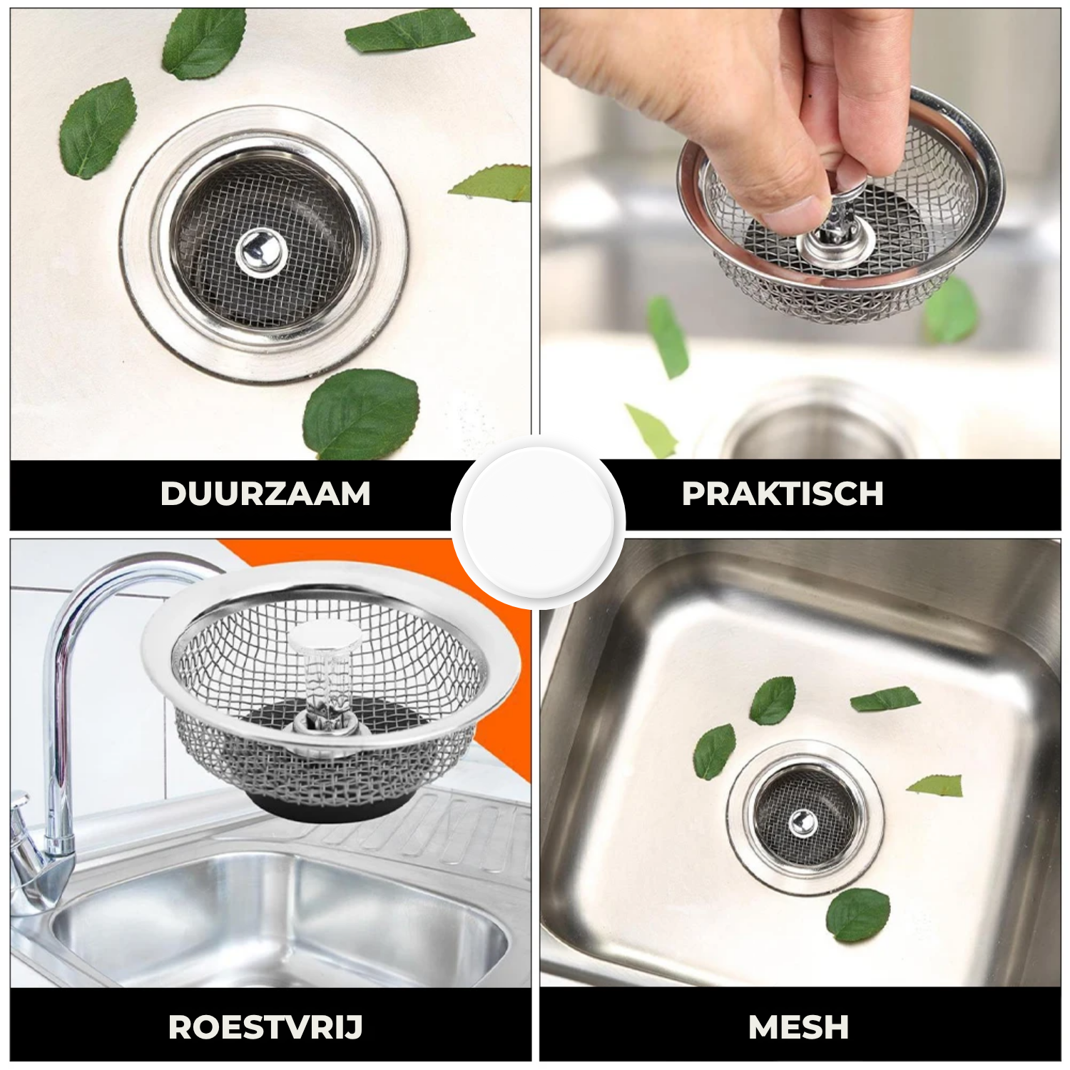 ✔️ Ultrafint nät mot igensättning - Fångar mat, hår och smutspartiklar för att förhindra att ditt avlopp blockeras.