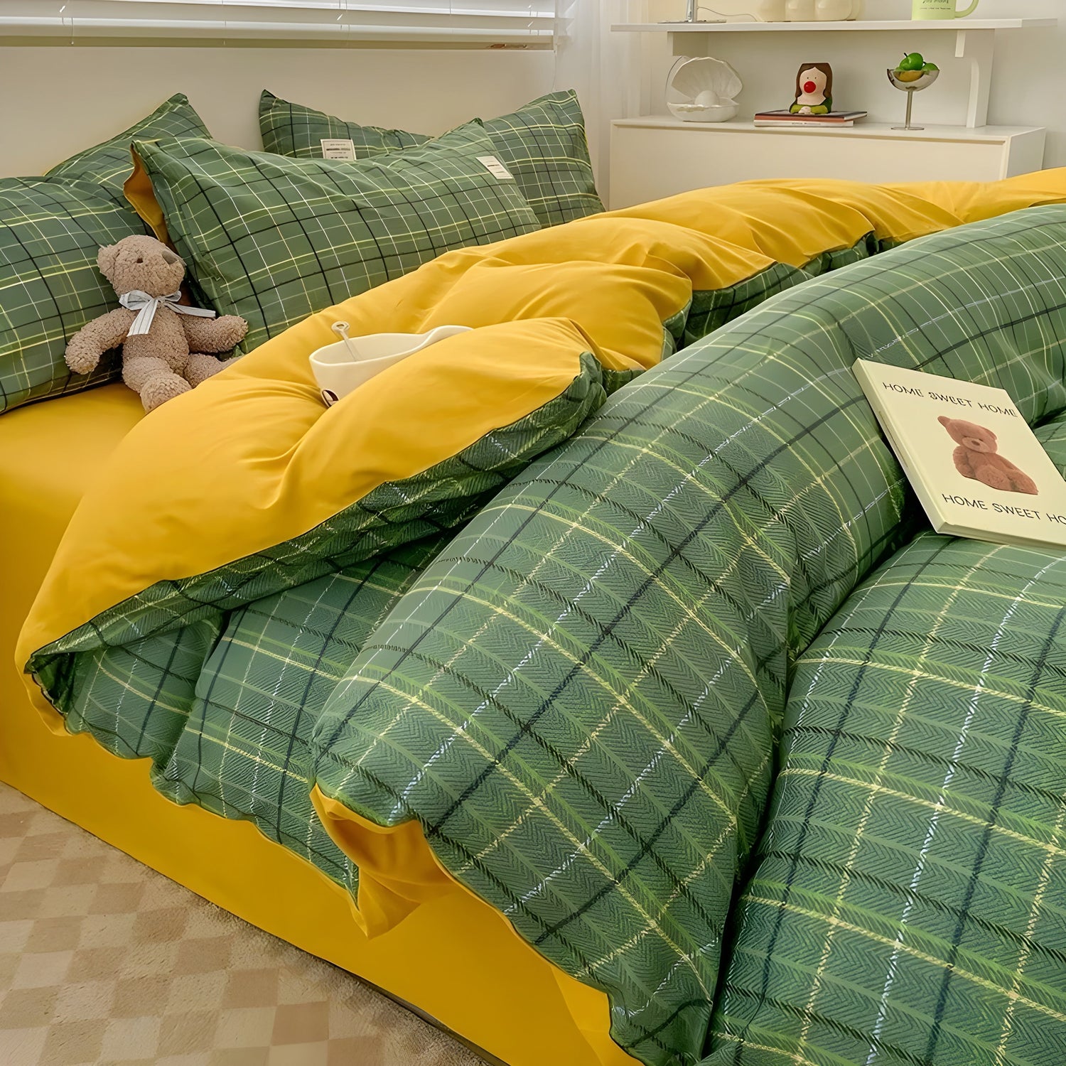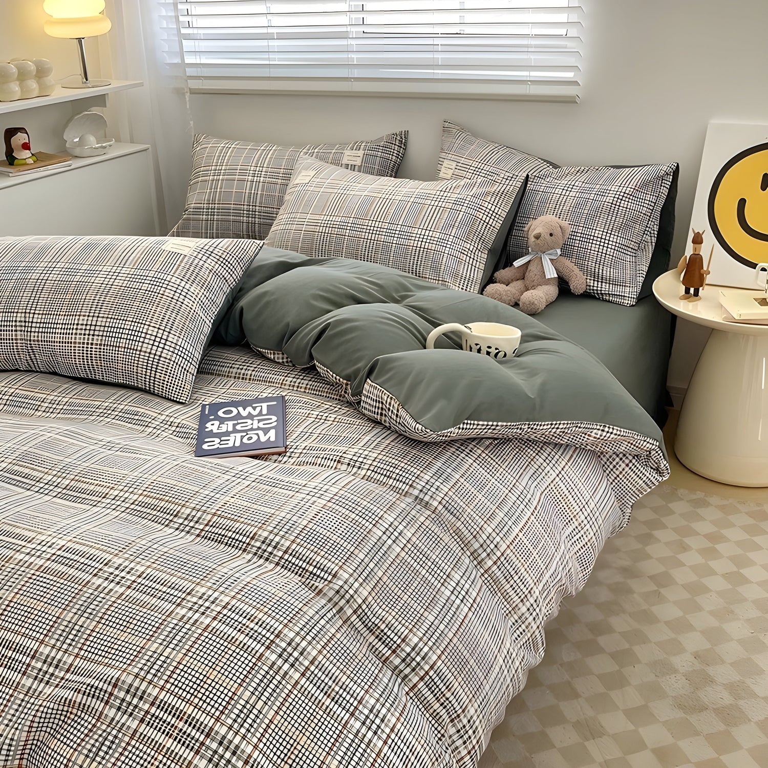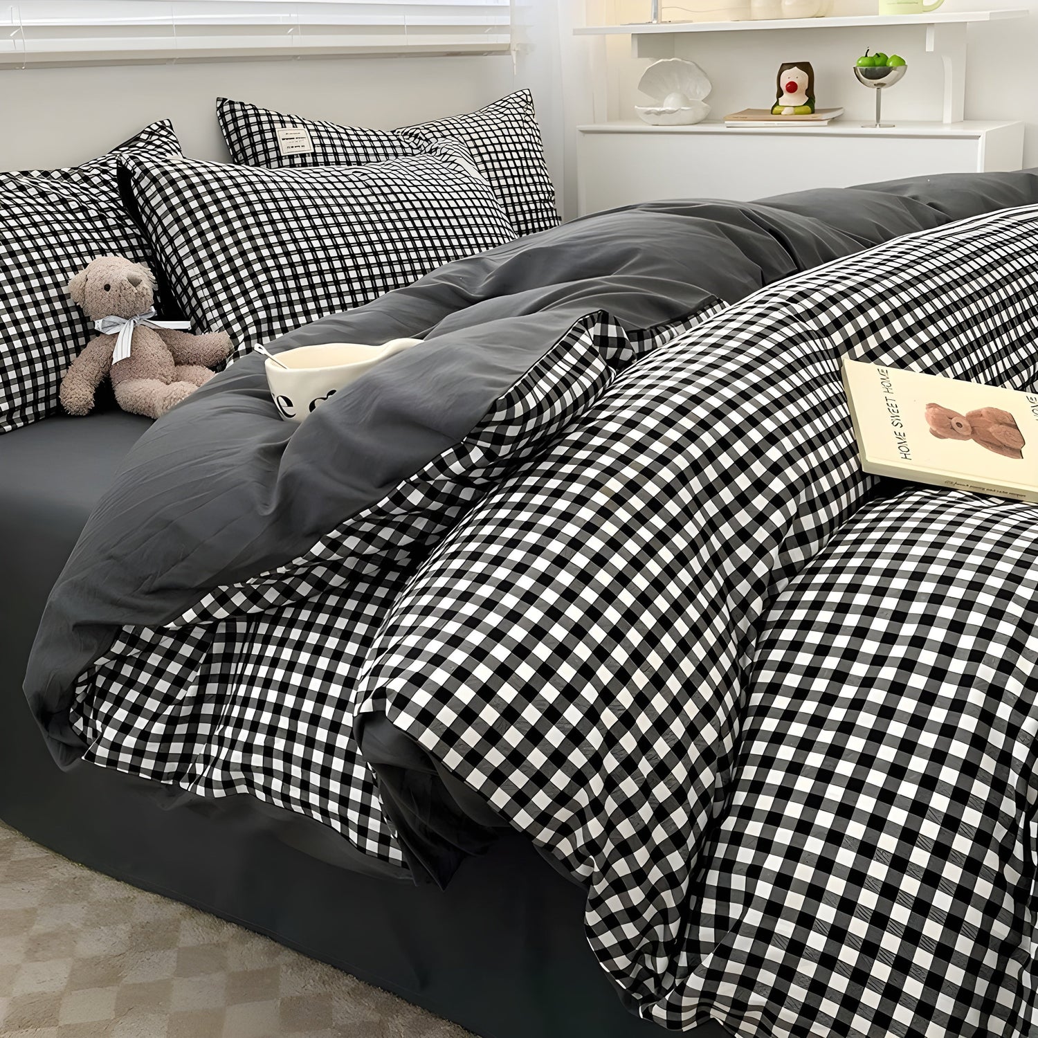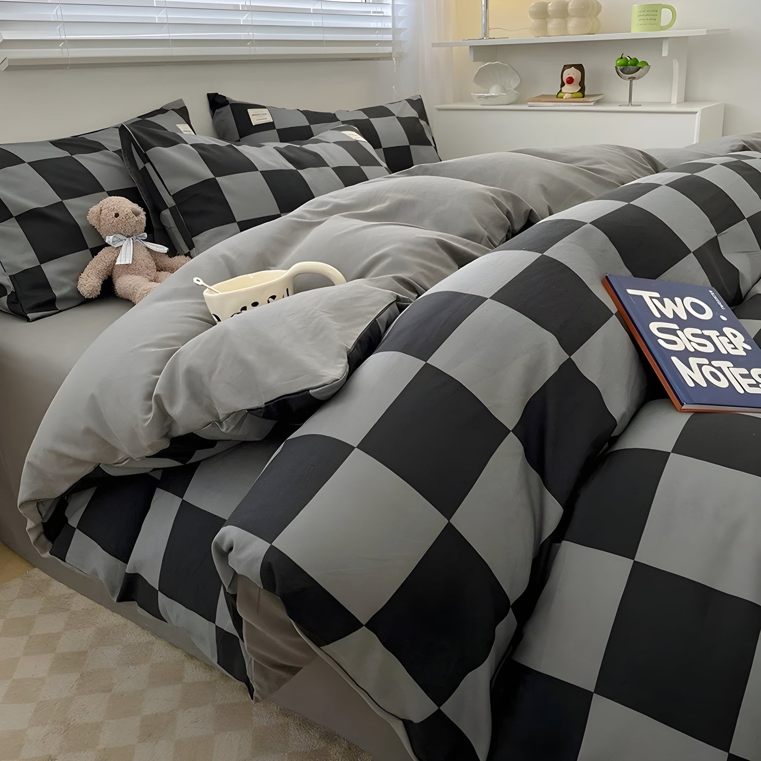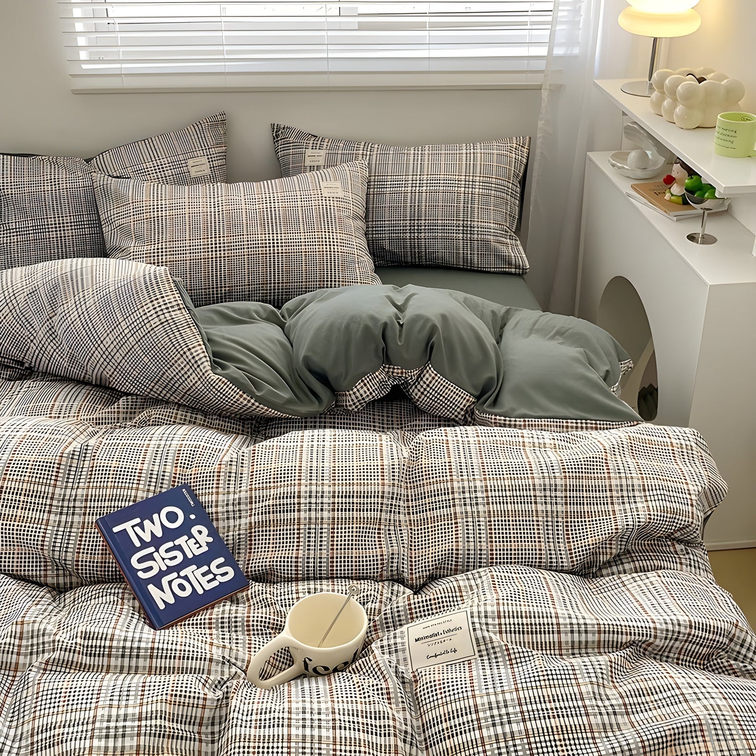 DreamPlaid Sängkläder Set - Nordisk Rutmönster Bomull Sängkläder Set