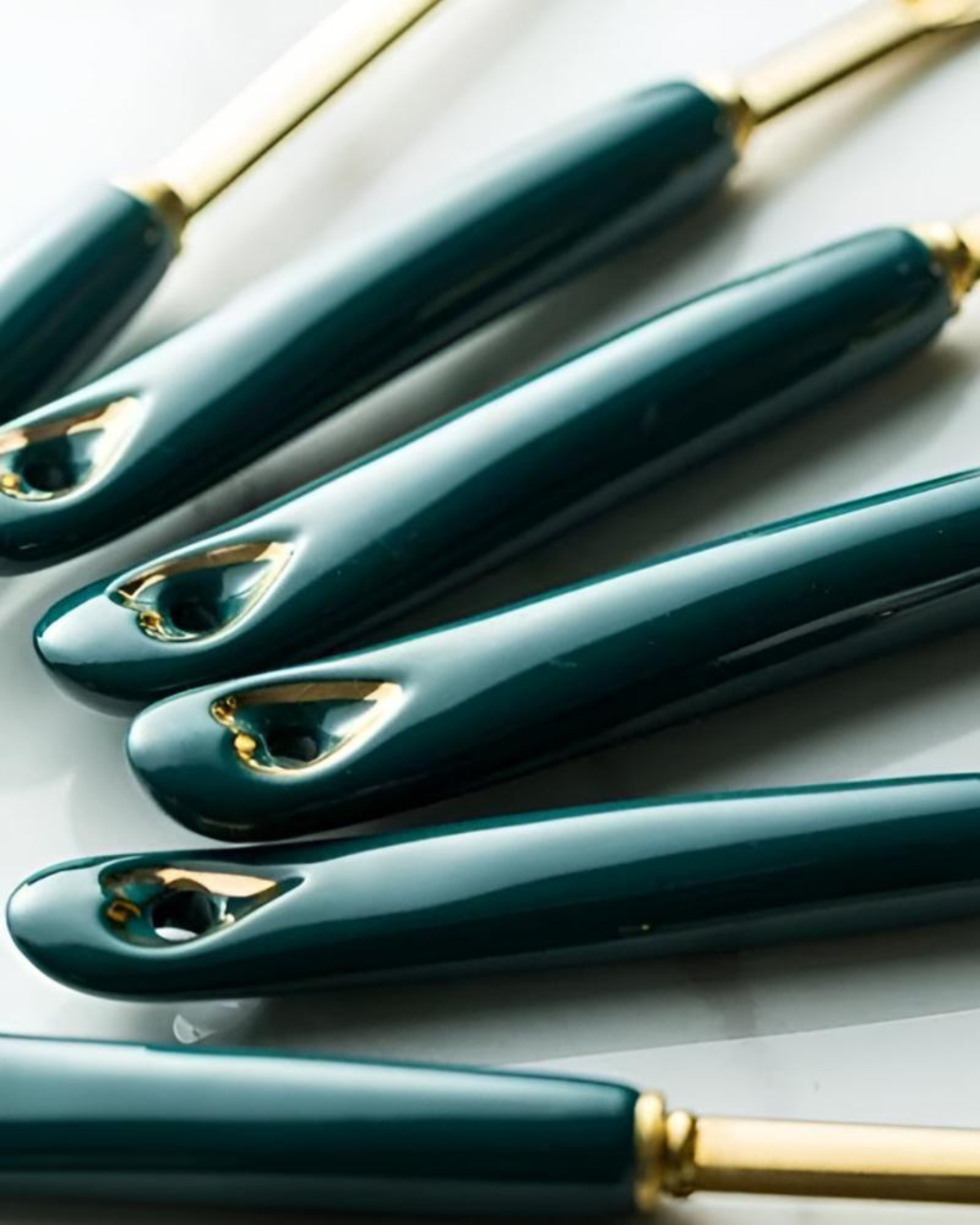 - Djupa smaragdgröna handtag – Elegans och komfort i perfekt balans.