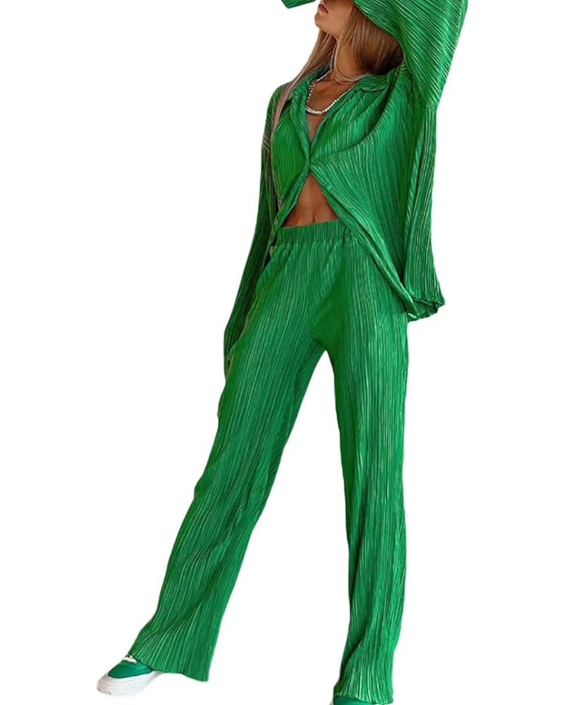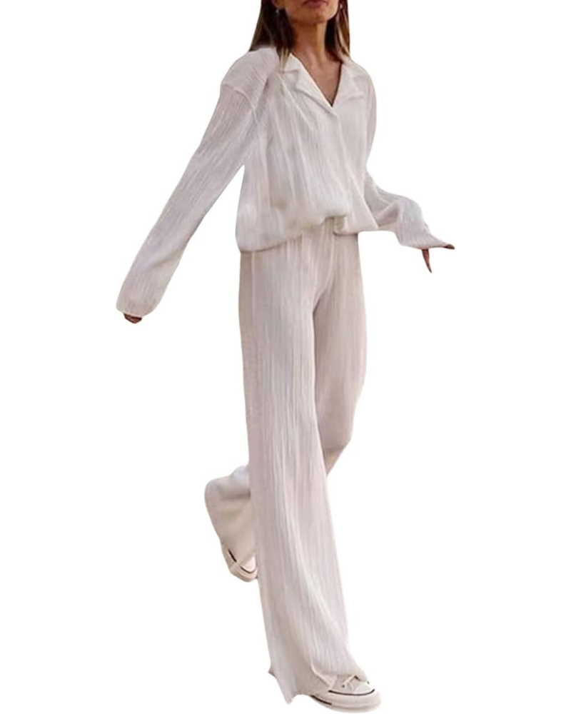 ELEGANT PLISSAD DESIGN: Women's Elegant Pleated Duo har plisserade detaljer på både den långärmade toppen och byxorna, vilket ger en touch av elegans och stil till din ensemble.
