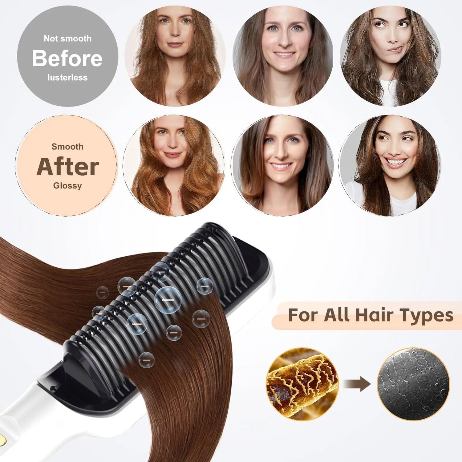 Denna Hår Plattång Borste 3 i 1 gör det snabbt att räta ut ditt hår och förvandla det till mjuka, glänsande strån.