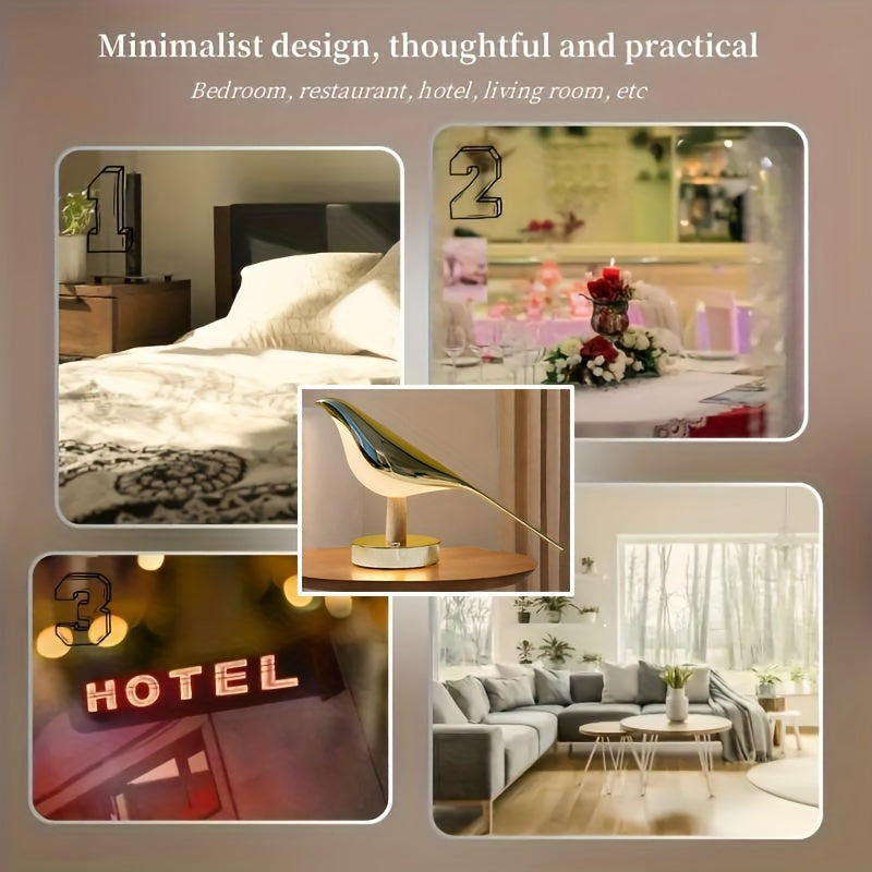 Ta med lugn och stil till ditt utrymme med denna fågelformade LED-lampa. Den blanka designen kombinerad med den träbasen gör den till ett elegant tillskott i varje interiör. Med tre justerbara ljusinställningar kan du perfekt anpassa atmosfären, från stark arbetsbelysning till ett mjukt, varmt sken. Denna lampa erbjuder både estetisk njutning och praktisk belysning för ditt skrivbord, nattduksbord eller vardagsrum.