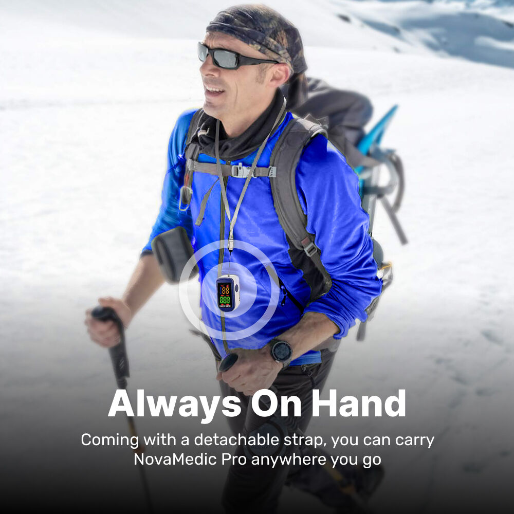 Designad för användning på språng, är denna oximeter liten och lätt, vilket gör att den enkelt får plats i fickan eller väskan. Perfekt för användning hemma, på gymmet, under resor eller för alla som behöver regelbundna hälsokontroller.