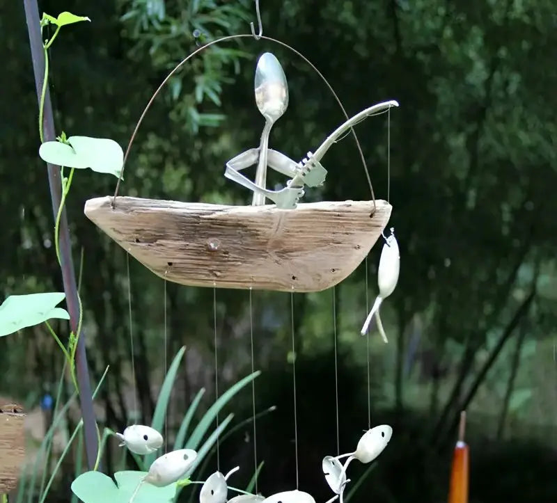 Fiskarvindklocka – Skulptur i återvunnen metall för fiskträdgård