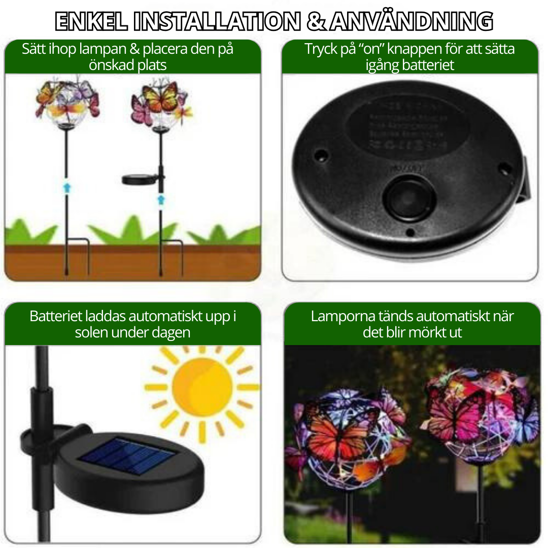 Fjärilsparet® | Solcellsdrivna fjärlisklot på stav