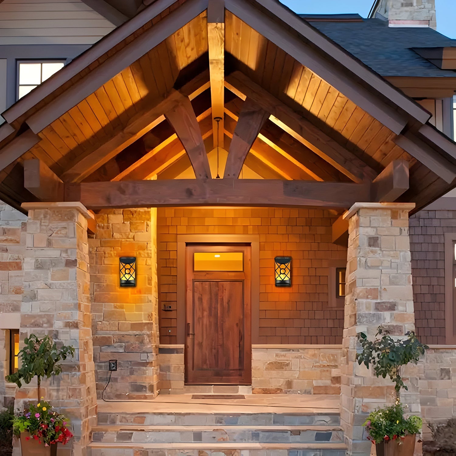 FlameGlow Lights - 2 sty utomhusbelysning solcellsdrivna LED-vägglampa