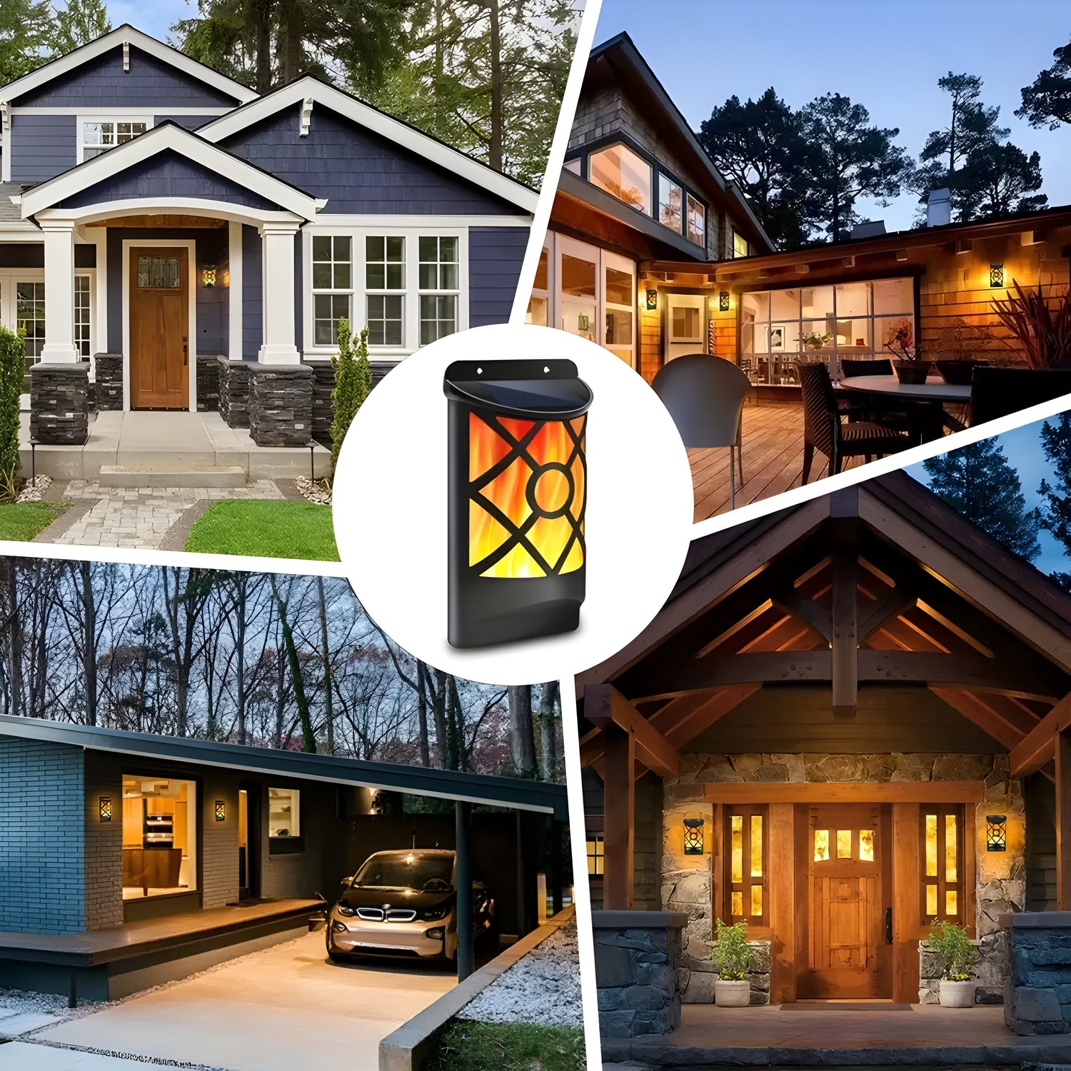 Med FlameGlow Lights får du äkta lägereldskänsla direkt på din husvägg – helt utan öppen låga eller elförbrukning. Dessa soldrivna LED-vägglampor kombinerar elegant design med automatisk skymningsdetektering, så de tänds automatiskt när det blir mörkt. Det fl flickerande flamutseende skapar genast en varm, mysig atmosfär på din terrass, i trädgården eller vid infarten.