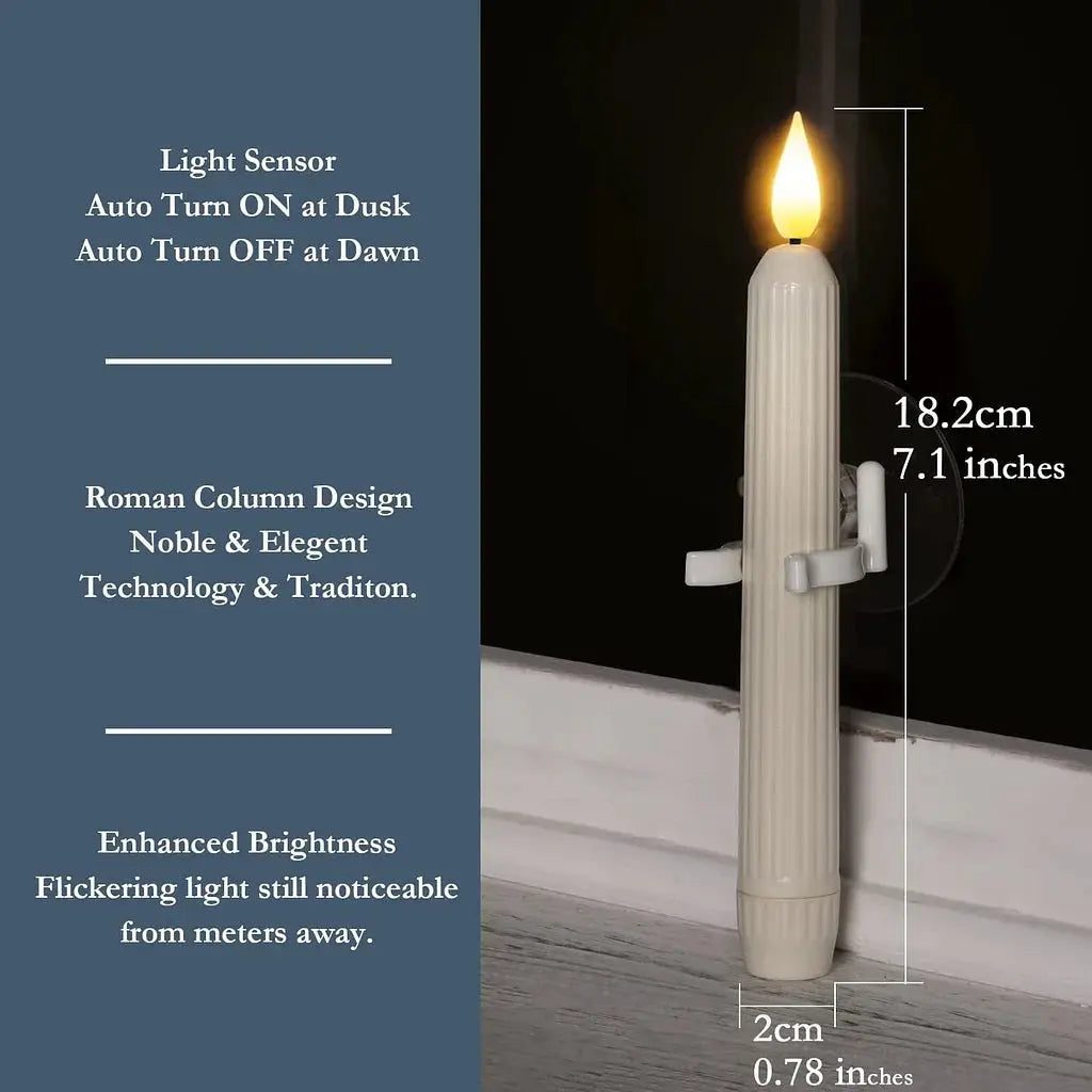 Ge ditt hem ett varmt och inbjudande sken utan krångel med sladdar eller lågor. Dessa flamlösa LED-fönsterljus har en inbyggd skymningssensor som tänds automatiskt när natten faller och släcks igen i gryningen. Med sin elfenbensfärgade pelardesign och flimrande ljus skapar de en tidlös och mysig atmosfär för alla årstider.
