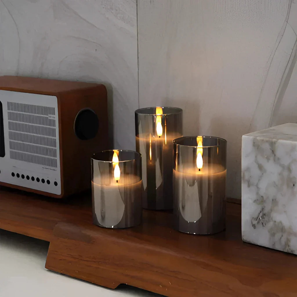 Flamlösa ljusset av glas med fjärrkontroll – 3-delat LED stumpenljusset