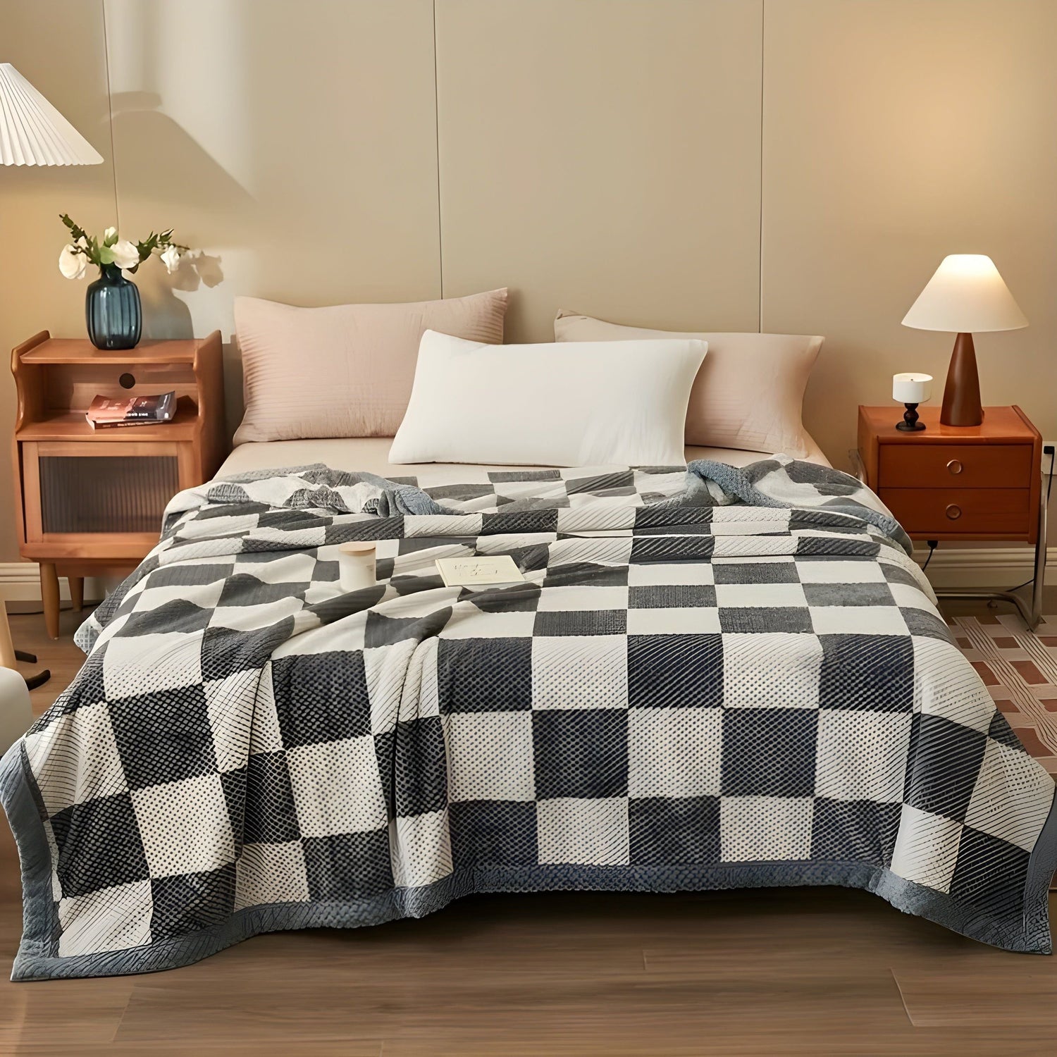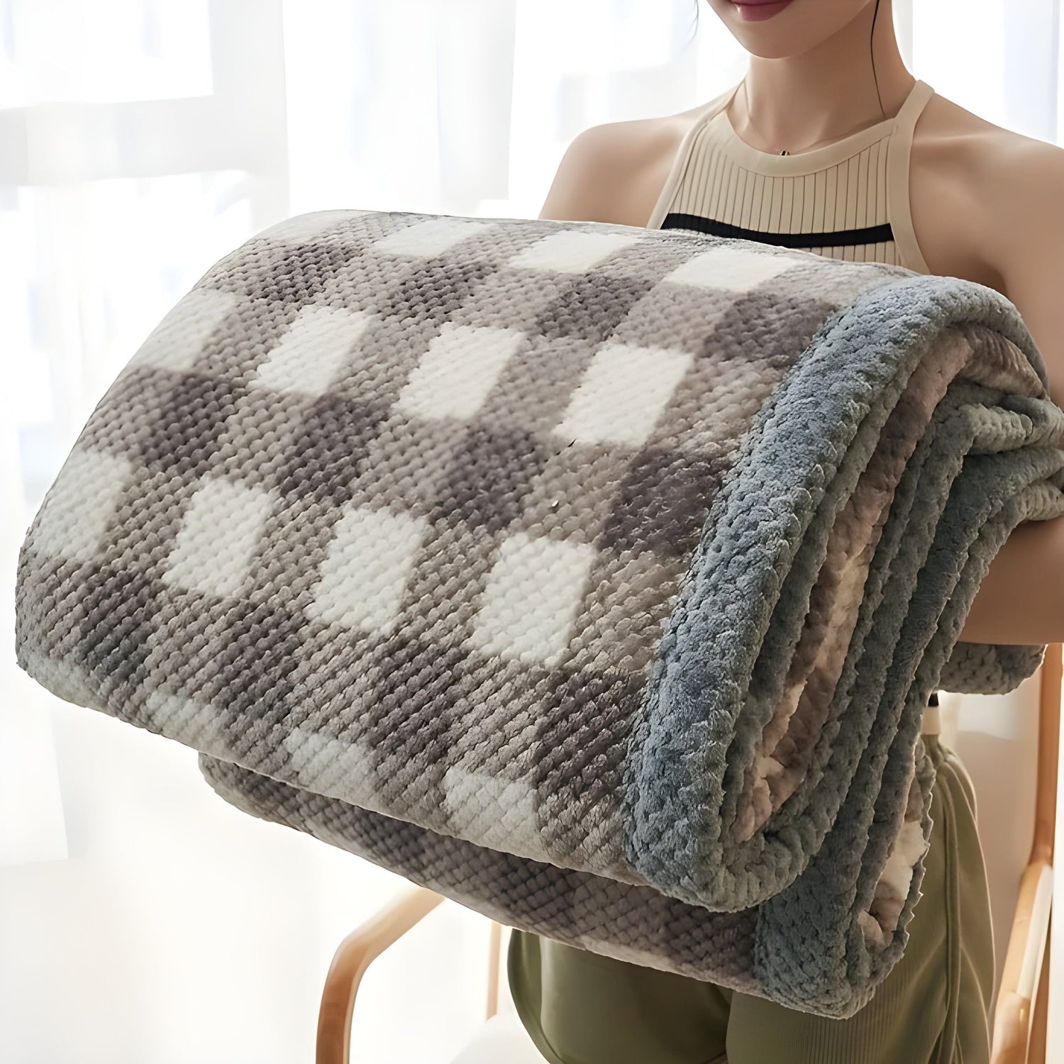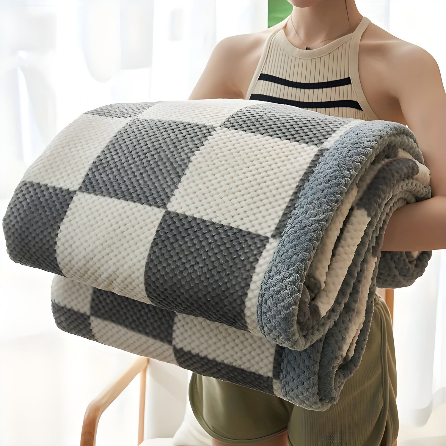 Kärleksfilt i chenille – Mjuk, rutig stickad fleece-pläd