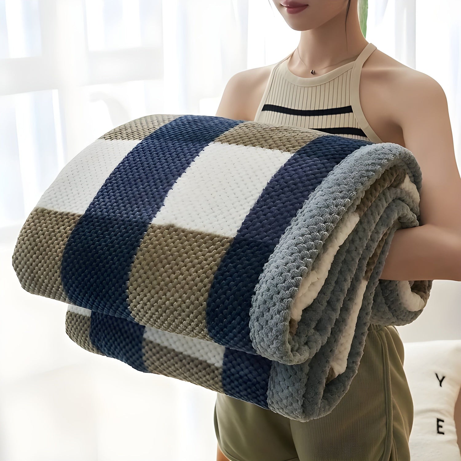 Upplev den ultimata komforten med vår chenille-pläd! Denna mysiga, stickade pläd i mjukt fleece är perfekt för mysiga kvällar i soffan eller i sängen. Tillverkad av högkvalitativa, mjuka material, ser den till att du alltid känner dig varm och bekväm. Oavsett om du arbetar hemifrån eller kopplar av i soffan, är denna pläd den perfekta följeslagaren för alla tillfällen.