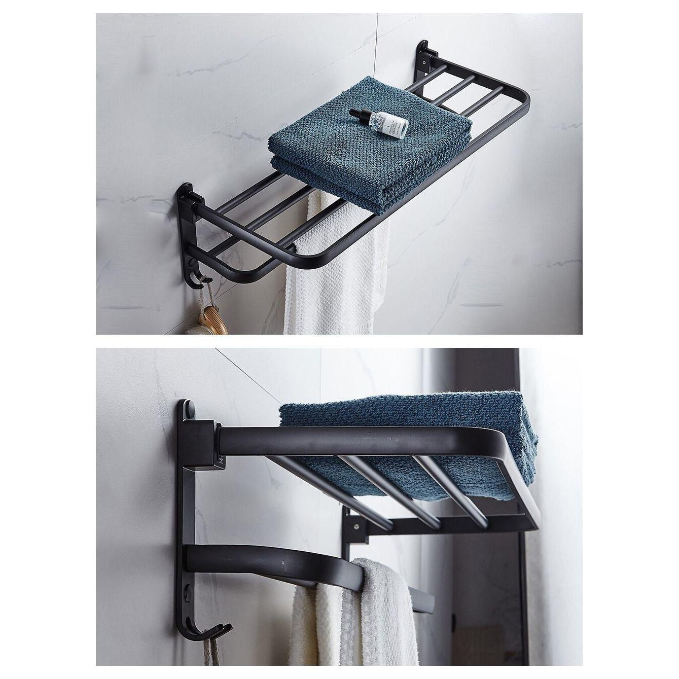 Är du trött på att handdukarna staplas och skapar en rörig och fuktig miljö? Sammanläggbar handdukshållare med krokar revolutionerar ditt utrymme. Med sin innovativa design gör den att vattnet effektivt rinner bort, vilket ger torra handdukar och ett prydligt rum. Aldrig mer irriterande pölar eller genomblöta handdukar!