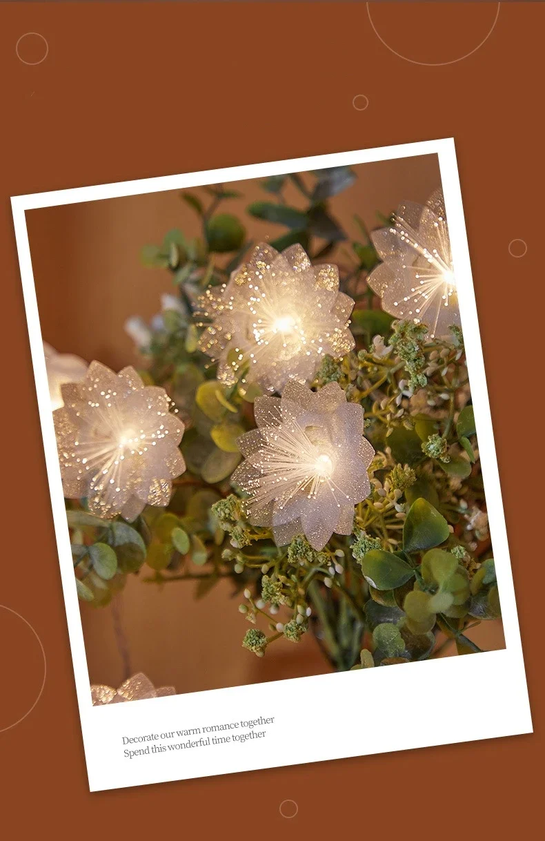 📌 Förtrollande design med blomsterlook – Kärleksfullt utformade blommor ger ljuskedjan ett naturligt, lekfullt utseende – perfekt för hemmagjorda dekorationer eller romantiska arrangemang.