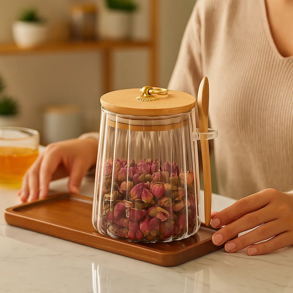 Oavsett om det är för kryddor, torkad frukt eller hantverksmaterial – burken säkerställer en säker och ordnad förvaring. Den skyddar inte bara mot fukt, utan ser också till att du enkelt kan nå dina saker när som helst.