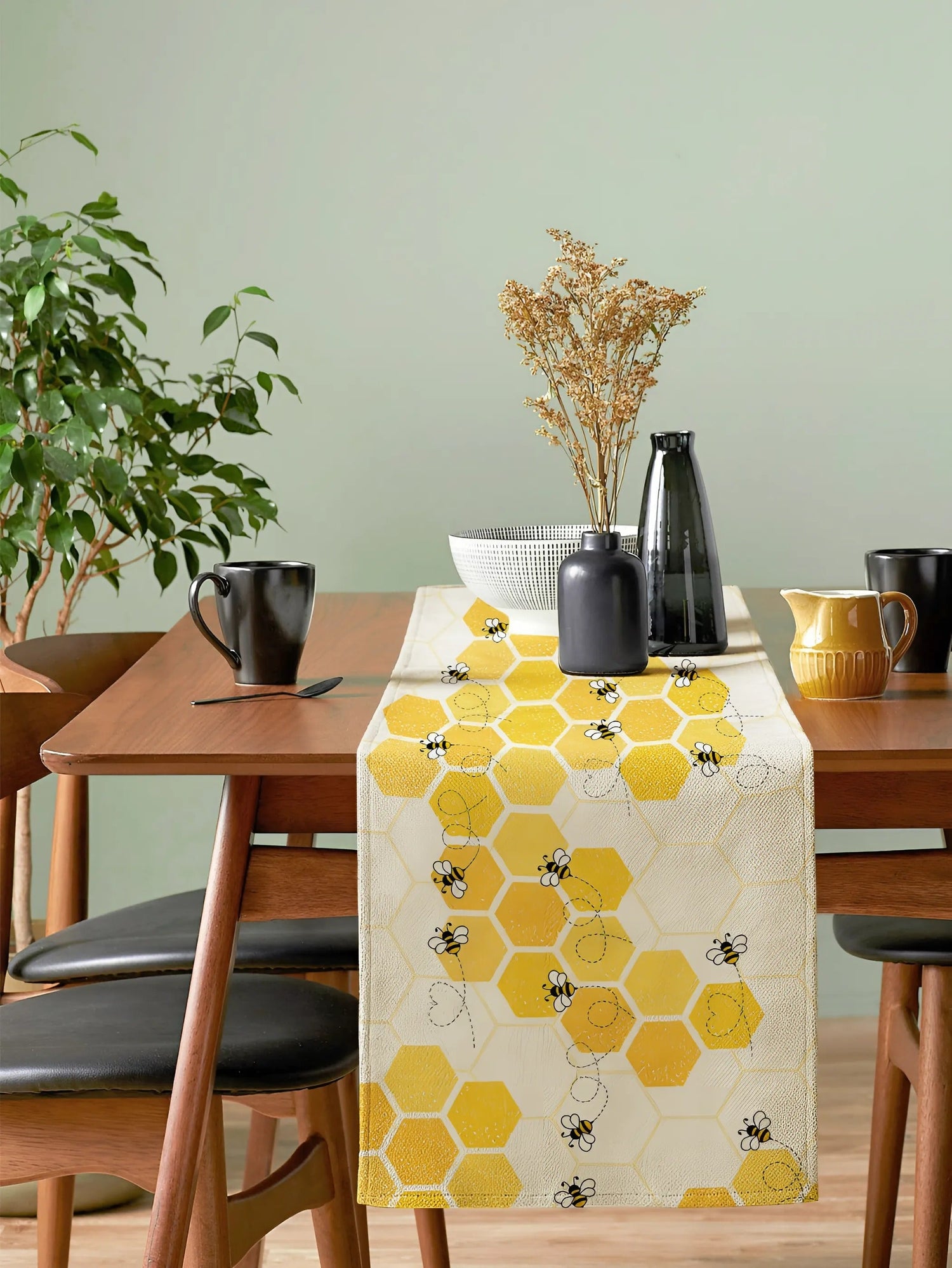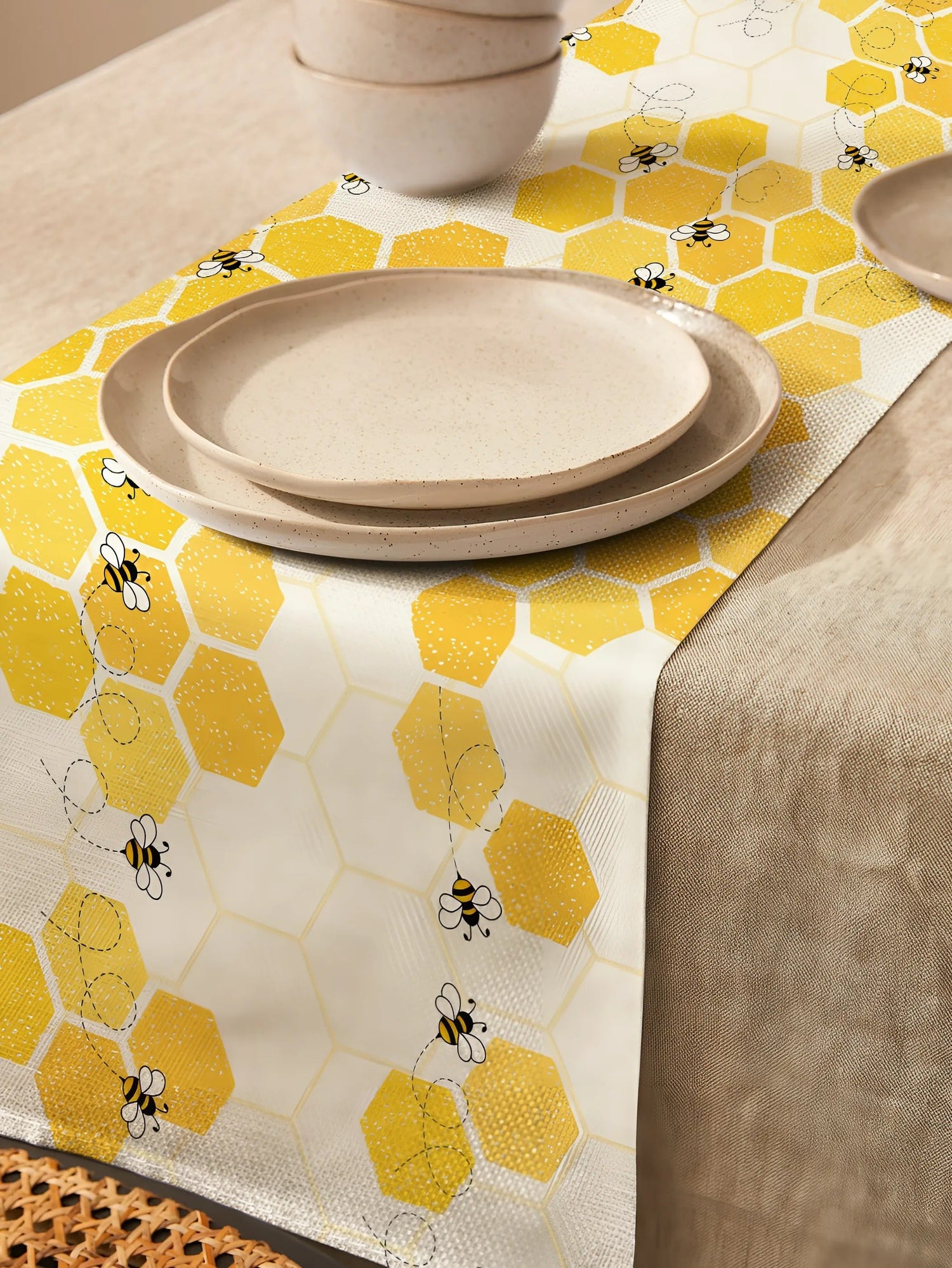 Denna Geometric Bee Pattern Linen Table Runner för stilfull dekoration är inte bara en bordsaccessoar; det är ett statementsstycke som lyfter din heminredning. Gör varje måltid minnesvärd med denna vackra tillägg till din matkollektion.