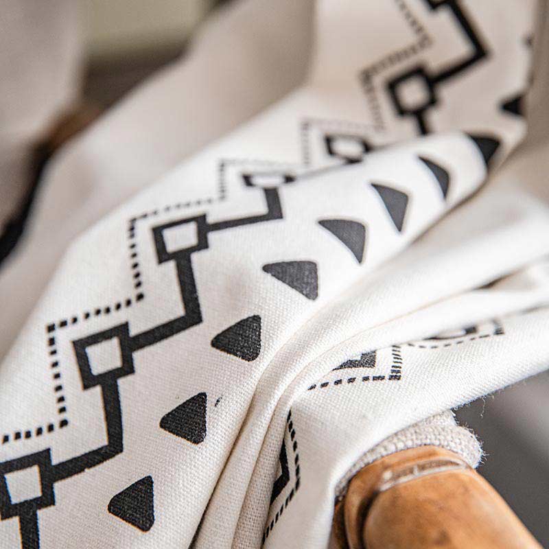 Geometrisk Fringe Gardin Semi Mörkläggande Draperier i Bomullsblandning
